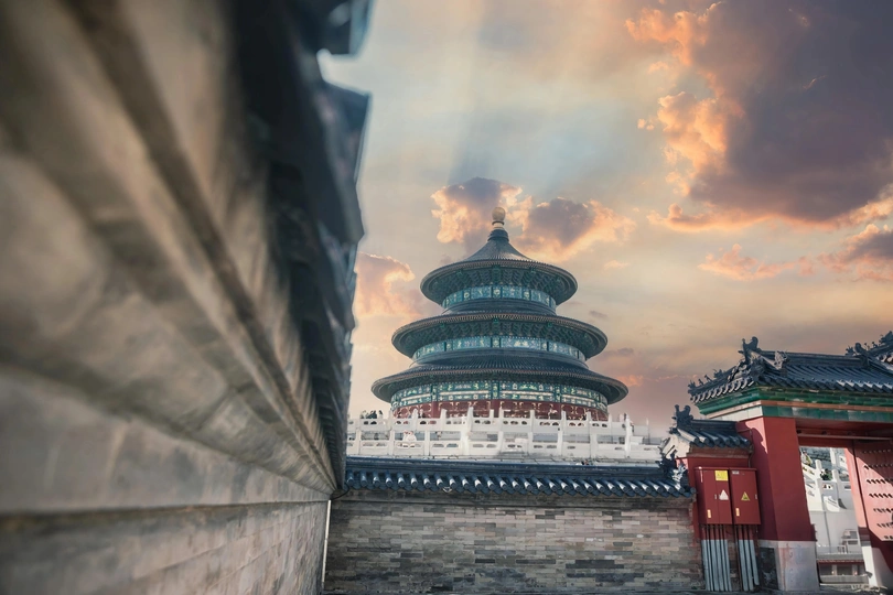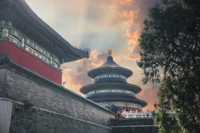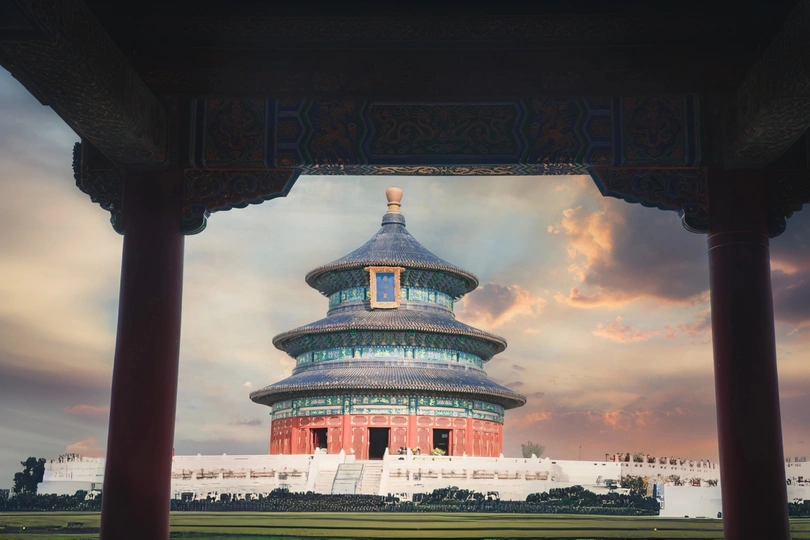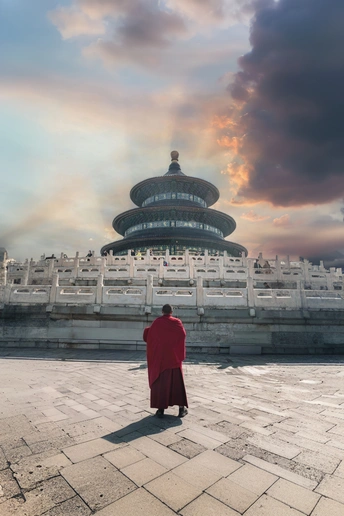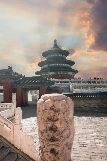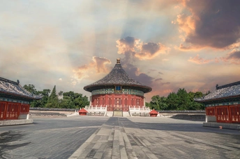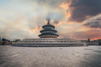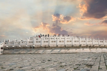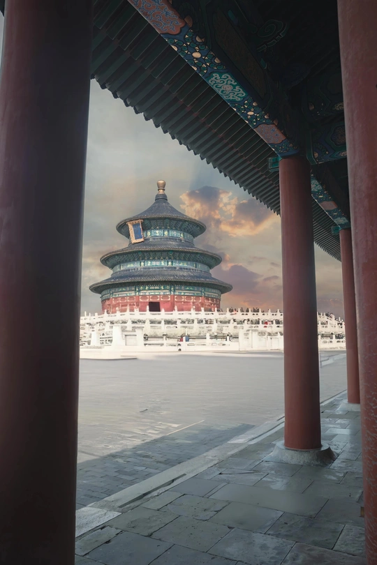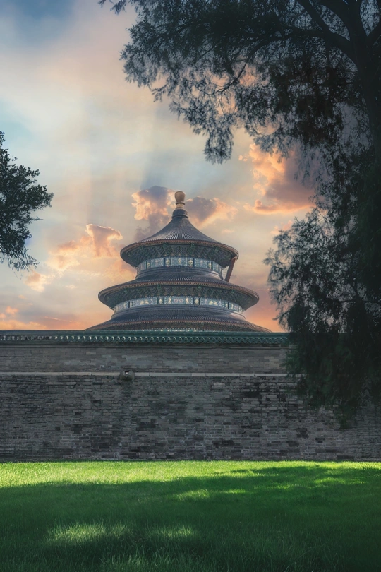 琉璃瓦的蓝,是白日里沉淀下的寂静,此刻却被泼天的胭脂染透了。那晚霞是烧着的,从西边一直烧到祈年殿的宝顶,金色的鎏金、青绿的彩绘,都融融地浸在这片暖光里,失了棱角,像一盅温过的、陈年的酒。 汉白玉的栏杆还留着些白日的余温,蜿蜒的圜丘坛上,有个老者正不慌不忙地收着风筝。长风吹动他灰白的衣角,也送来远处几声模糊的鸽哨。那哨音浮在风里,与盘旋的归鸟一同,成了这盛大寂静里唯一的注脚。 祈年殿的剪影愈发沉静,在三层圆顶与天空相接的那条线上,仿佛亘古如此。它见过六百年的日升月落,此刻这惊心动魄的美,于它,不过是又一个寻常的黄昏。绚烂终将沉入墨蓝,而祈年殿会继续站着,替所有许过愿的人,守着那片沉默而浩瀚的天。