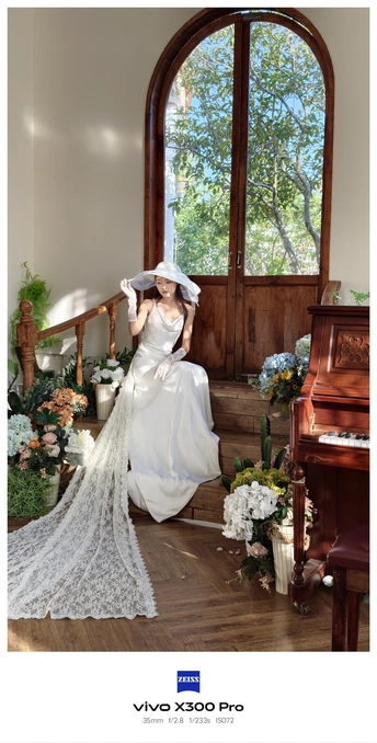 在洒满阳光的房间里,身着洁白婚纱的少女,宛如置身于梦幻之境。宽大的帽檐下,是对未来的憧憬与期待。身旁的鲜花静静绽放,古老的钢琴似在诉说浪漫的故事。这一刻,时光仿佛为她停留,每一处细节都编织着关于幸福的梦。