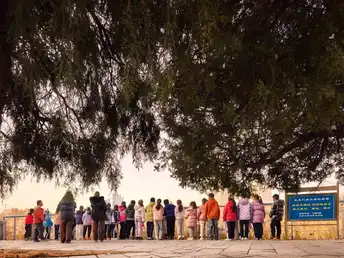 一群小学生在天津大学游学,小志愿者为小学生们讲解着青年湖的由来。