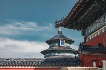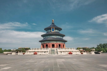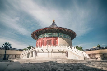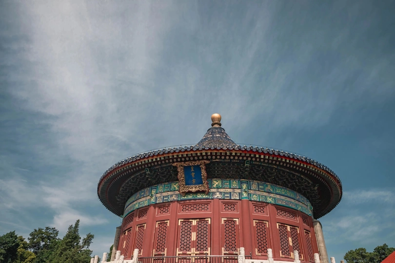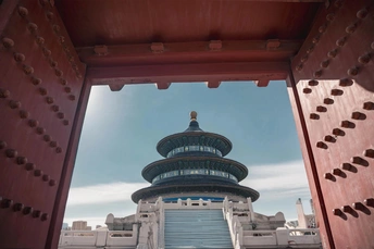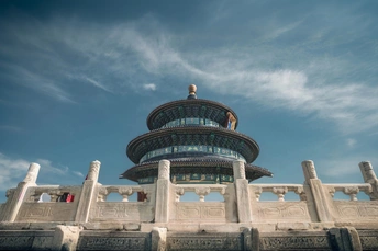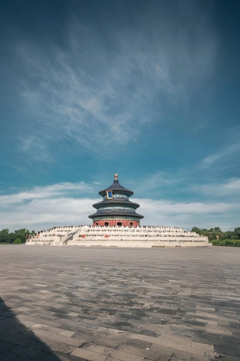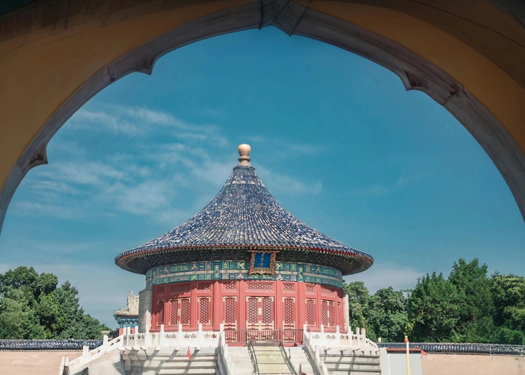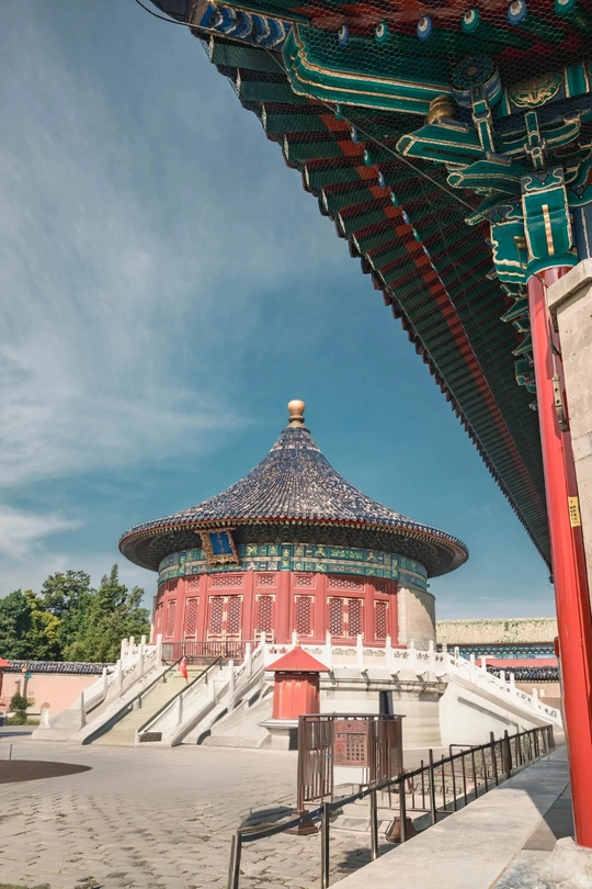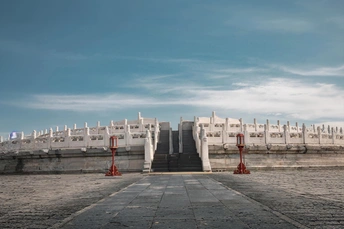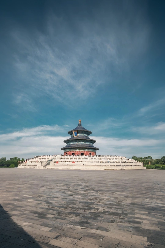 天坛的光,是清晨斜照在祈年殿蓝瓦金顶上的那一抹,琉璃泛着澄澈的辉光,汉白玉栏杆投下清晰的影,如时光刻下的刻度。穹宇的藻井里,阴影深邃,更衬得正中那一点金龙鎏金的璀璨。 穿行于丹陛桥,树影斑驳,明明灭灭地洒在御道上。圜丘坛的三层圆台,在正午的烈日下轮廓分明,石面耀眼;而当日头西斜,影子便被拉得悠长,与石雕的纹样交织成寂静的叙事。 这光与影,是这座祭坛无声的语言,述说着百年来明与暗、人与天的对话。