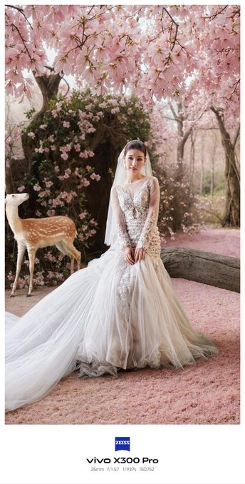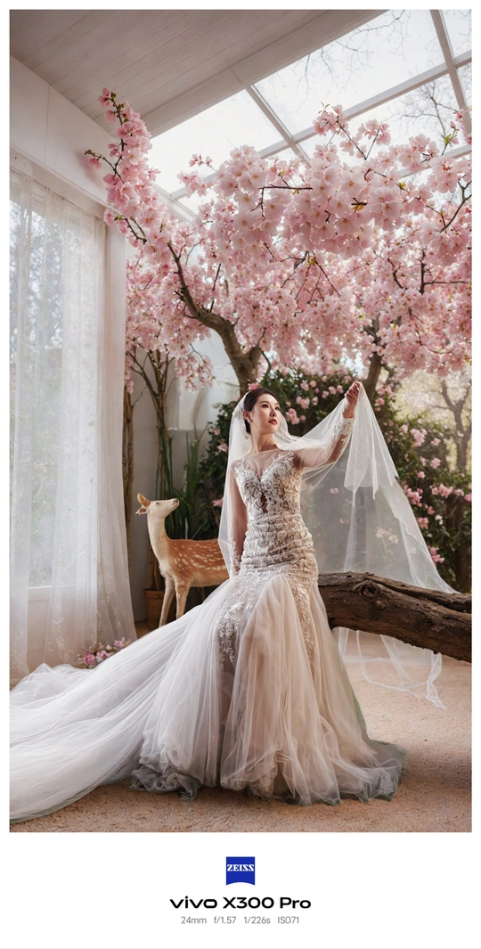 在梦幻的花室里,樱花烂漫绽放。身着绝美婚纱的女子,宛如从童话中走来的公主。她轻轻撩起头纱,眼眸中满是温柔与憧憬。身旁小鹿安静伫立,似在为这份美好祝福。这一刻,浪漫与梦幻交织,是独属于她的幸福瞬间。