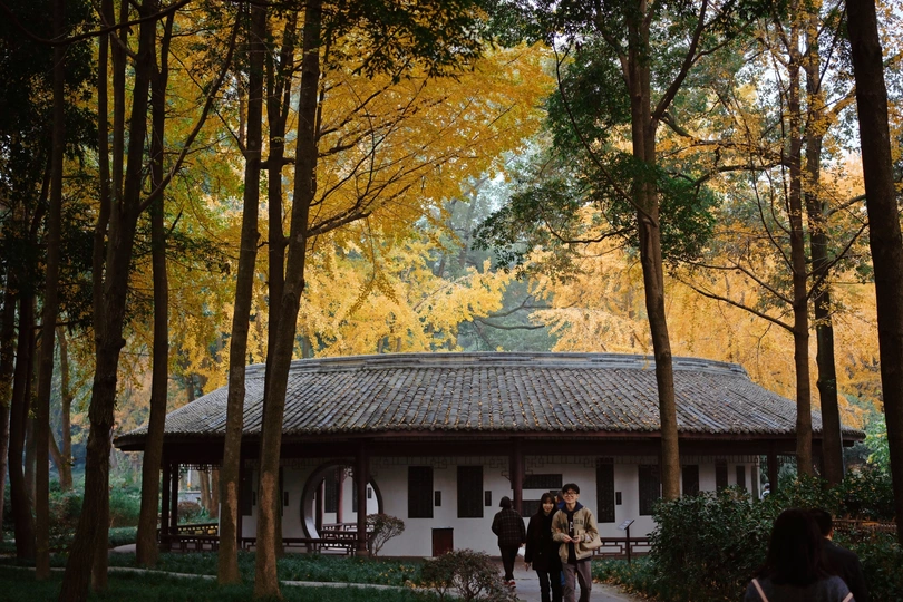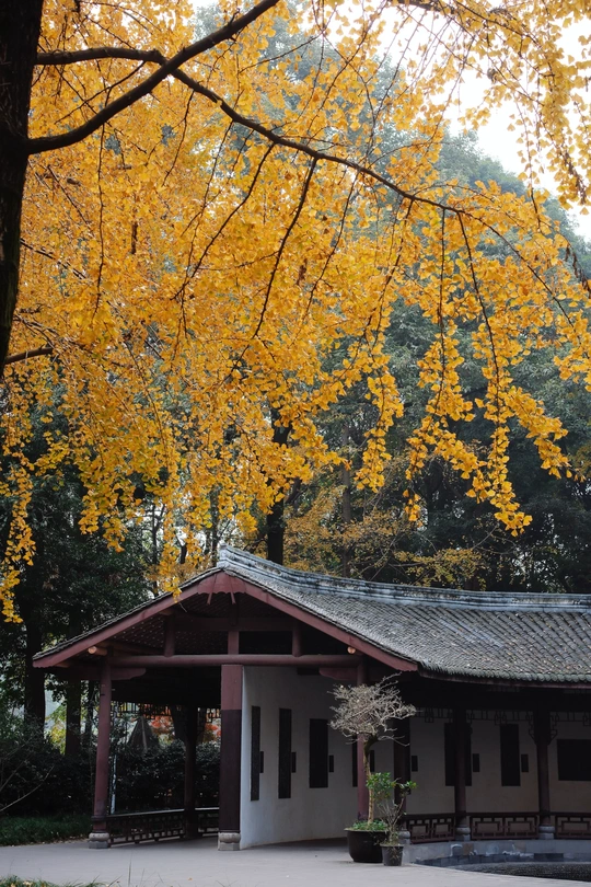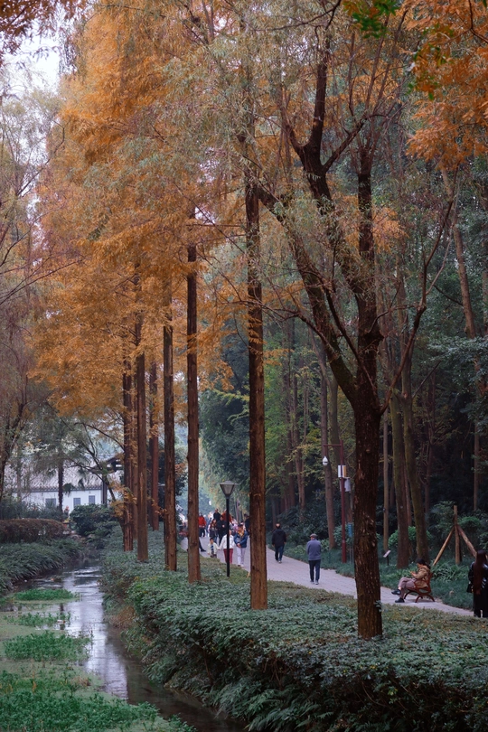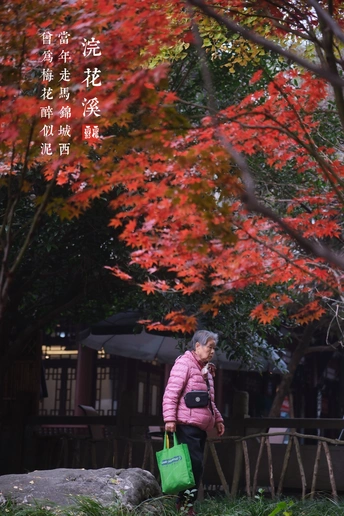 园林秋色,让人一?间就回到了大唐。这是成都最老的公园浣花溪公园,有一种沉静雅致的美。
