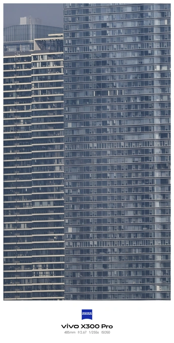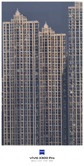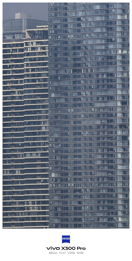 当镜头拉到485mm,钢筋水泥的森林突然有了新的肌理—— 是玻璃幕墙里藏着的云影,是楼体线条切分的晨昏,是千万扇窗里各自生长的生活。 这些被长焦定格的“切片”,没有车水马龙的喧闹,只剩建筑与光的默剧,在城市上空安静地循环。
