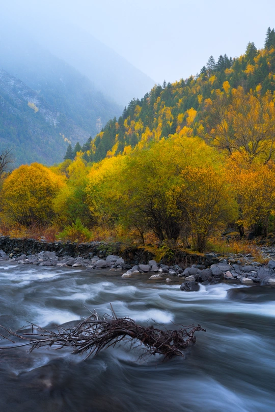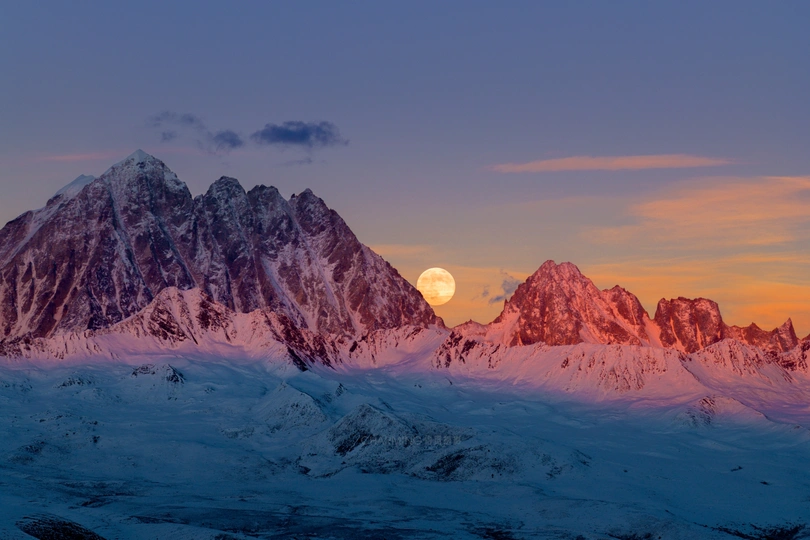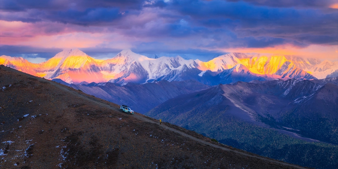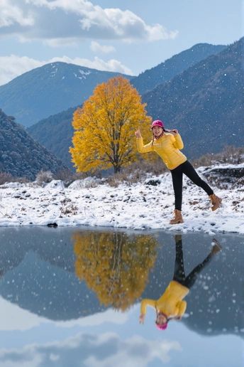 冬天去川西,可以在甲根坝看到漂亮的秋色,看蜀山之王贡嘎雪山与亚拉雪山的日照金山几率大大提升。
