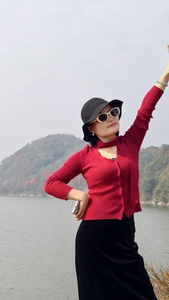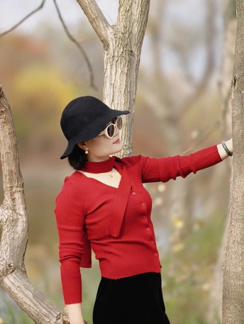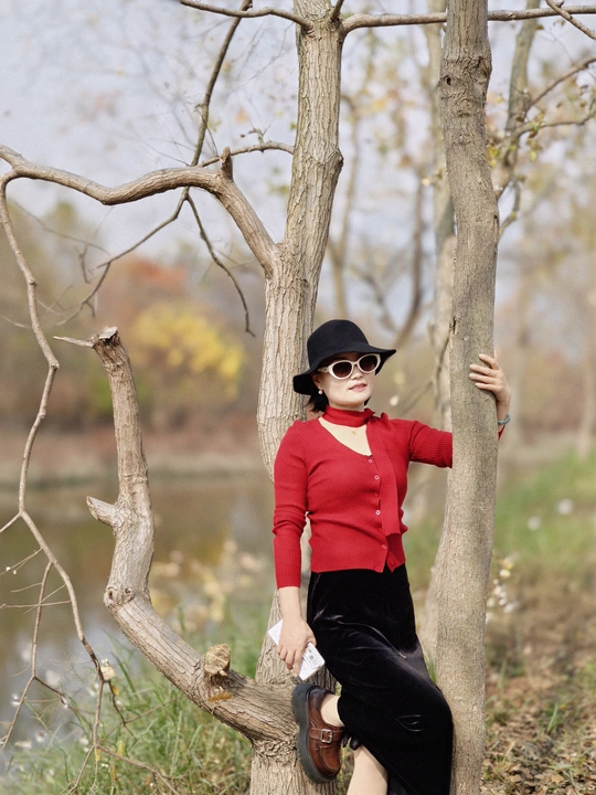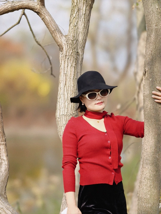 当深红针织衫邂逅秋日森林,每一帧都像电影画面。 不必刻意摆拍,信步走进林间,光影自会为你勾勒最美的轮廓。这个秋天,赴一场与自然的约会吧。