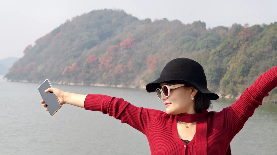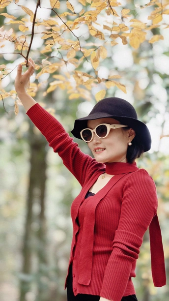 红衣女子的秋日写真