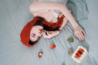 “草莓是甜的,蛋糕是甜的,遇到你,仿佛呼吸的空气都甜起来了呢”