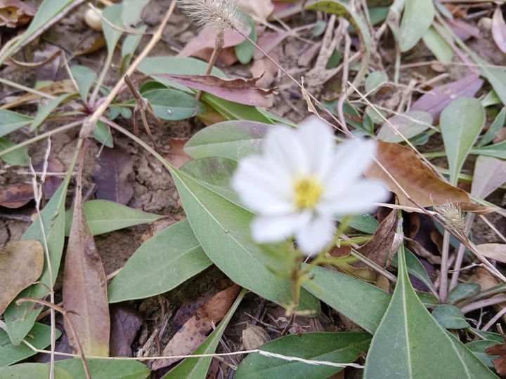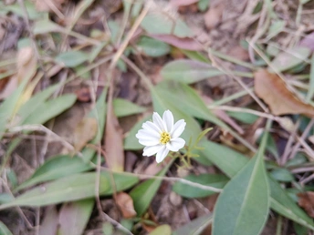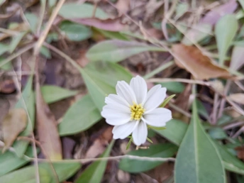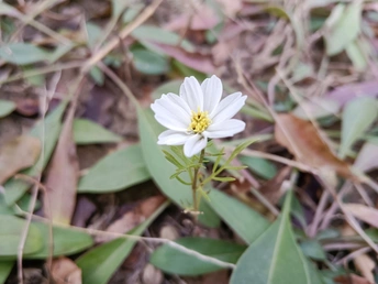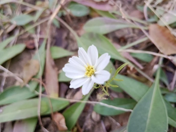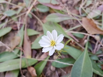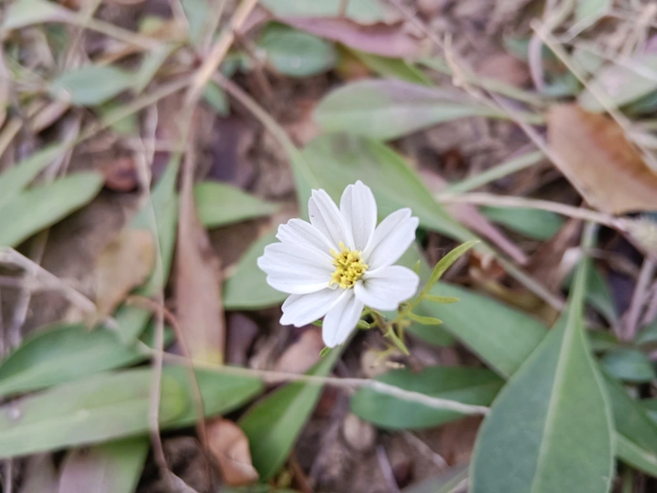 荒丛的杂绿与残叶间,这朵素白小花擎着金蕊,像落进秋隙里的星。