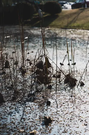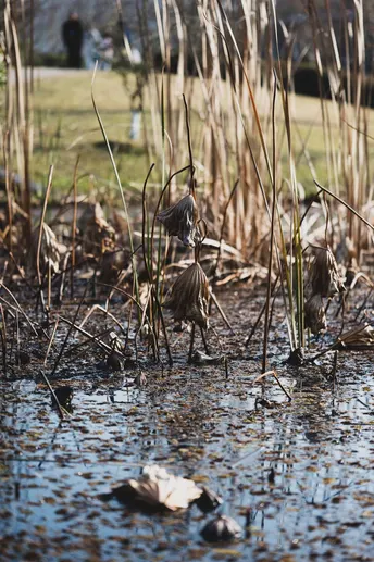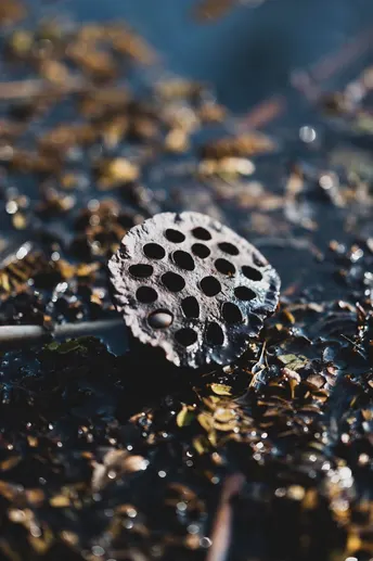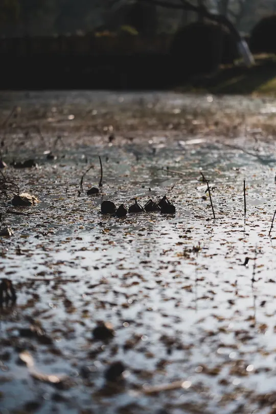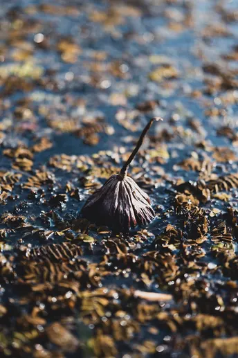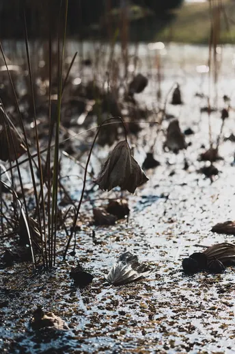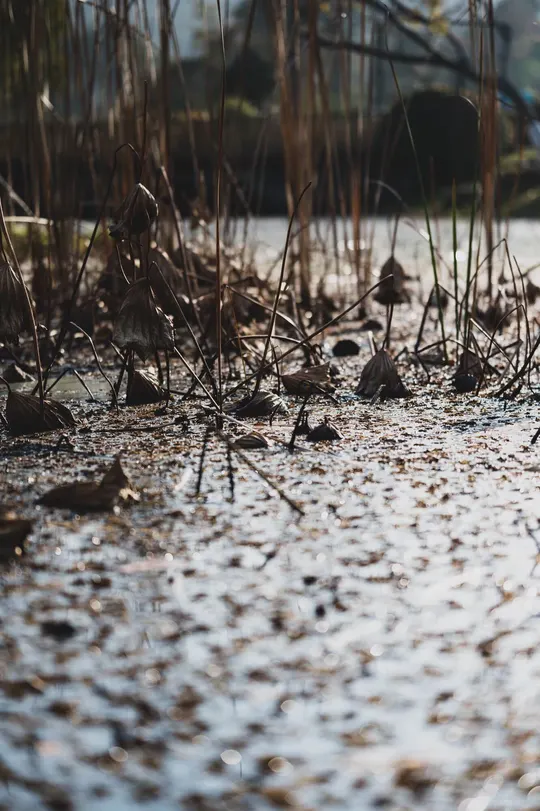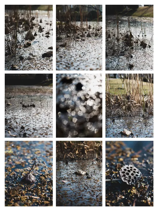 冬日的池塘边,偶遇这一帘残荷景致 枯萎的荷叶、莲蓬,在水面交错 像是时光写下的散文诗 阳光碎在水面,与残枝败叶缠绵 衰败里透着孤挺,荒芜中藏着力量 原来告别盛夏繁华后 枯萎也能美得这般惊心动魄 每一根残梗、每一片枯叶 都在诉说自然的轮回与哲思 按下快门时,心也跟着沉静 或许生命的美,本就不止盛放时的绚烂 枯萎里的坚韧、凋零中的留白 同样值得驻足、铭记