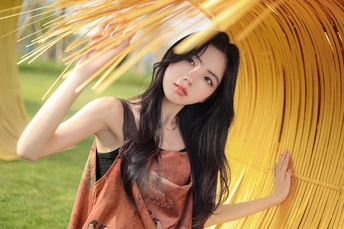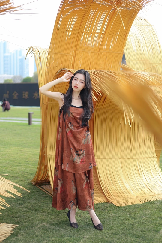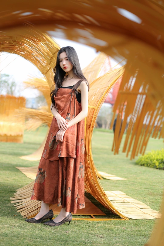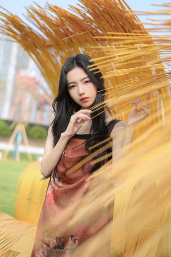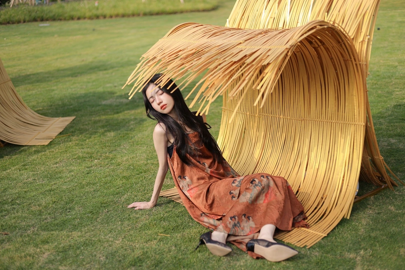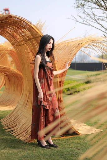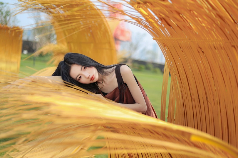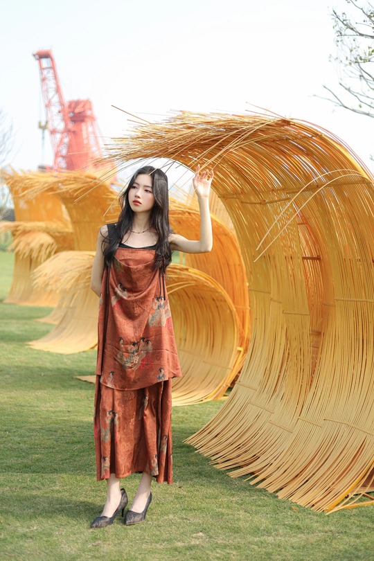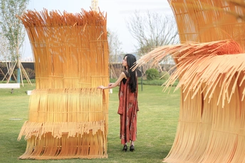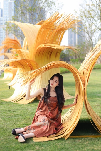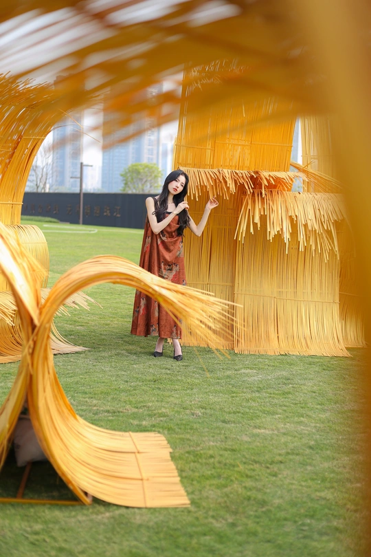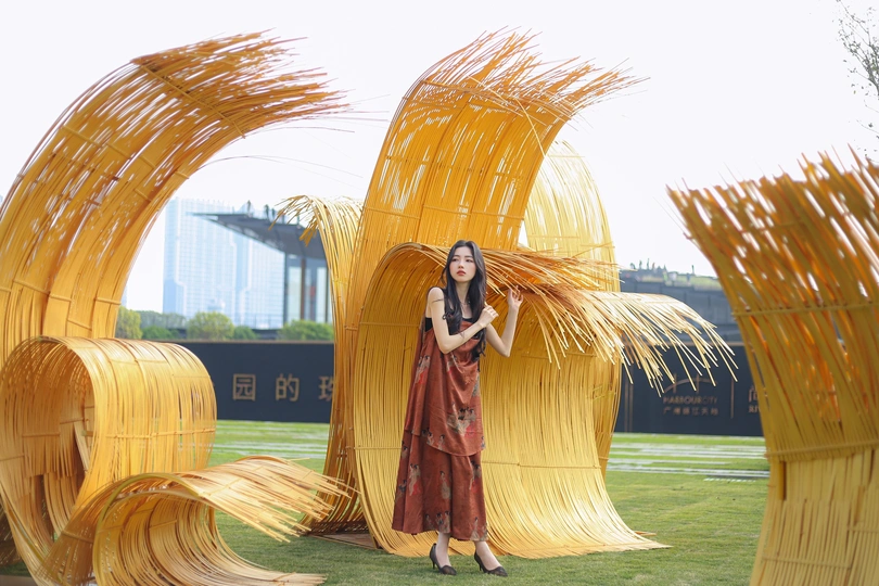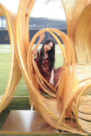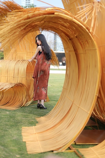 闯入一片金色编织的海浪, 当竹条化作海浪,静止也有了流动的诗意。