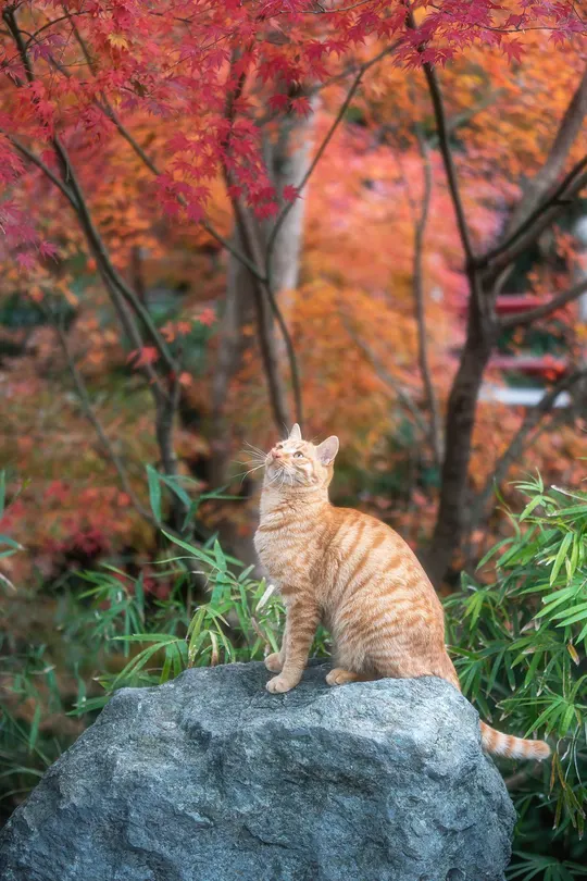 秋日橘猫的枫景独赏