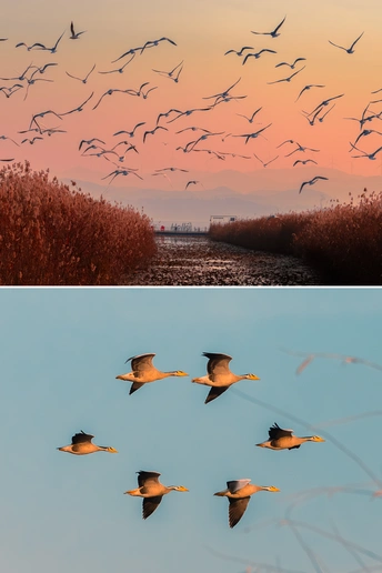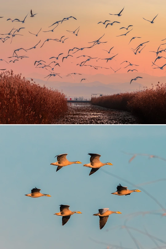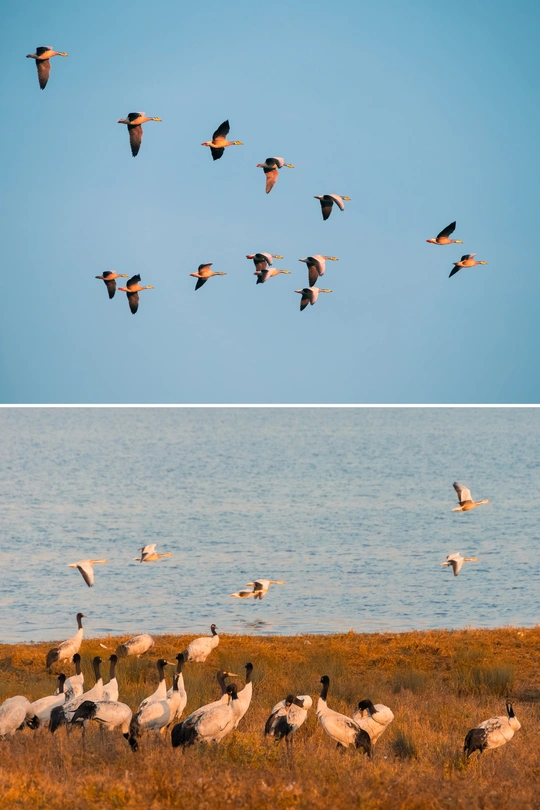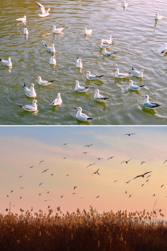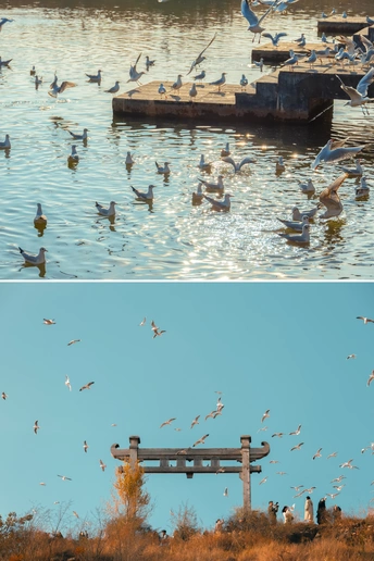 这里是贵州毕节草海,每年冬天,来自西伯利亚的海鸥同样也会在这里停留一段时间,除了海鸥,更有国家一级保护动物黑颈鹤以及斑头雁各类珍惜动物,所以,冬天不一定要去云南看海鸥,贵州亦有。