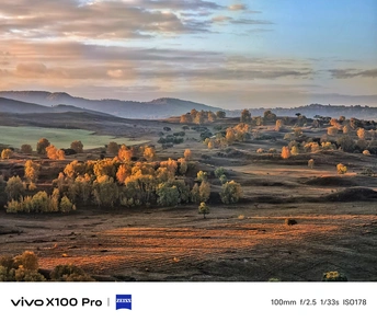 晨雾刚褪,秋山就被朝阳染成了暖金色。起伏的坡地裹着疏林与田垄,连风里都浸着季节的温柔。vivo X100 Pro定格的,是山野把秋意酿成诗的模样。