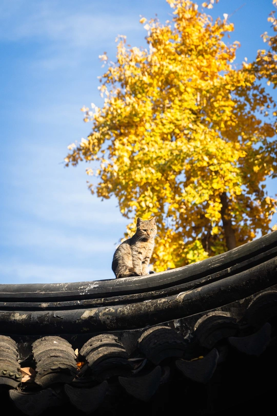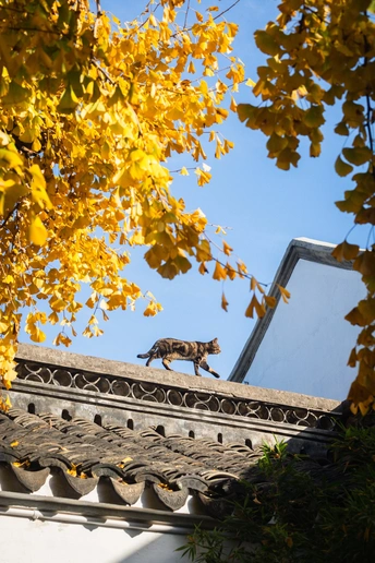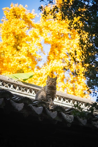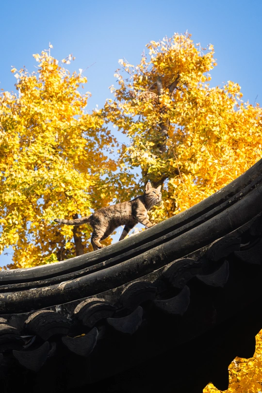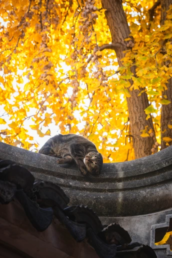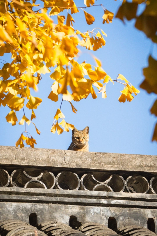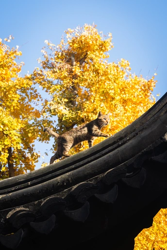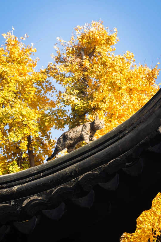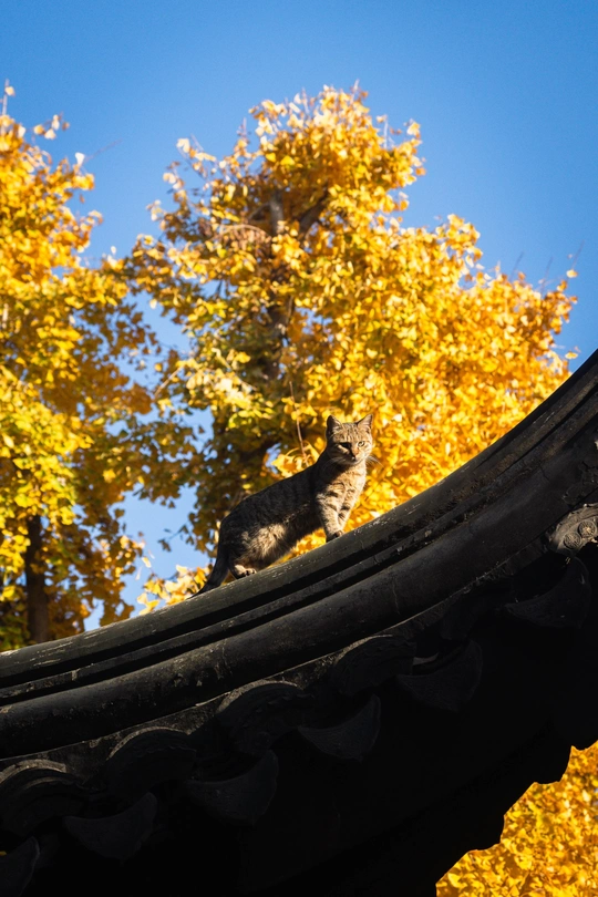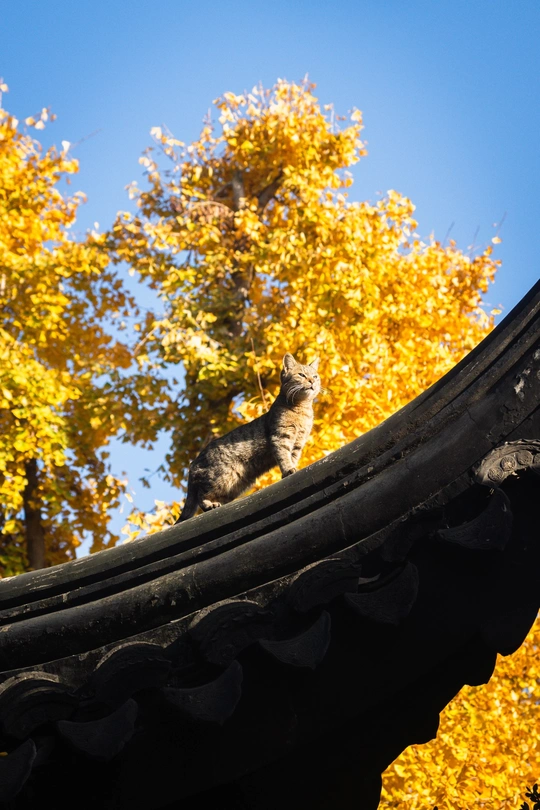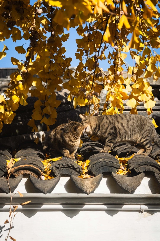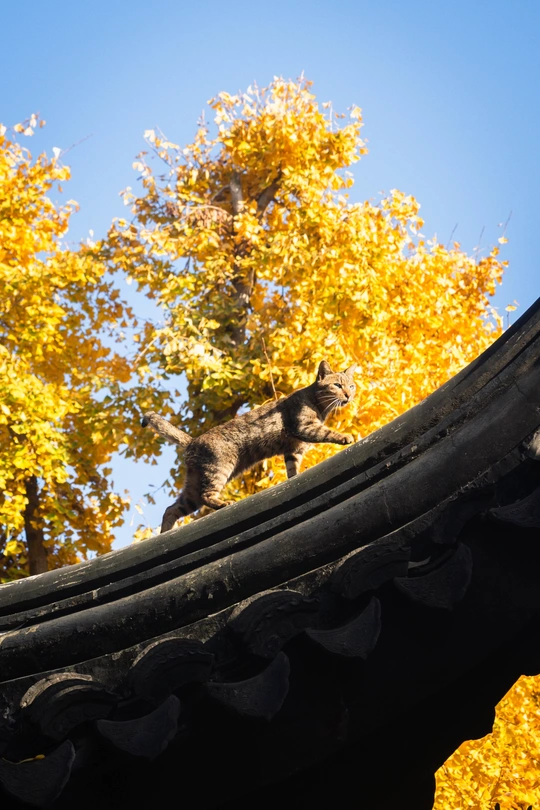 园林的屋顶就是咪们的游乐场,找个喜欢的地方晒太阳。溜达一下是常态。尤其是人发现以后它们一起俯视拍照和不停喵喵叫的人群估计也是一头雾水吧。🤣