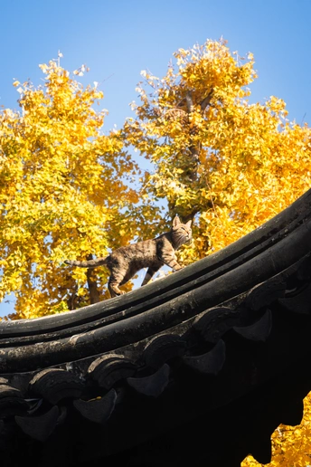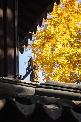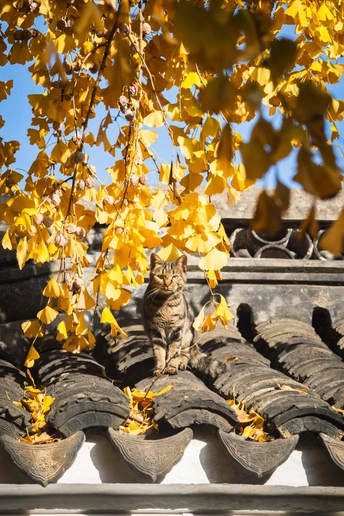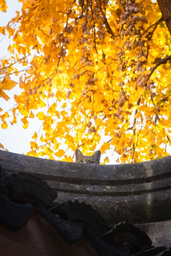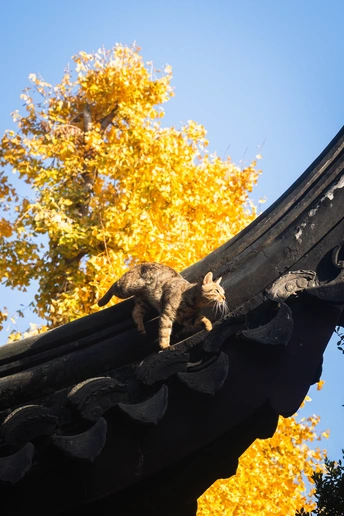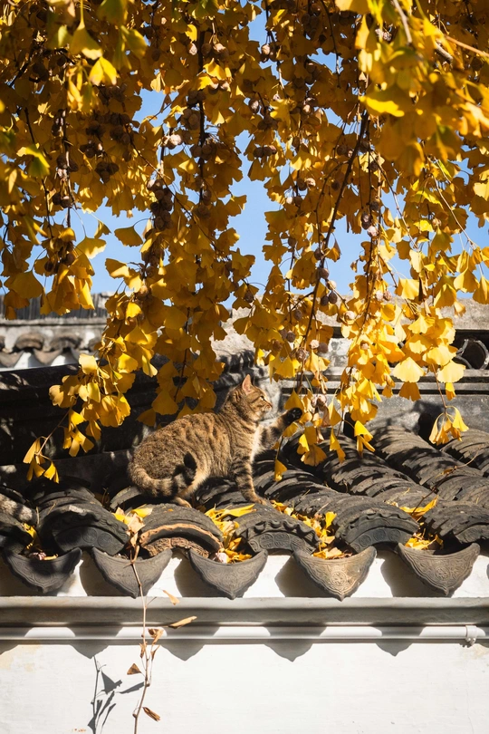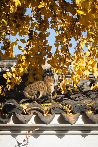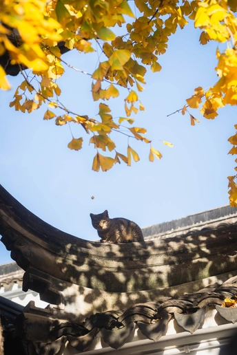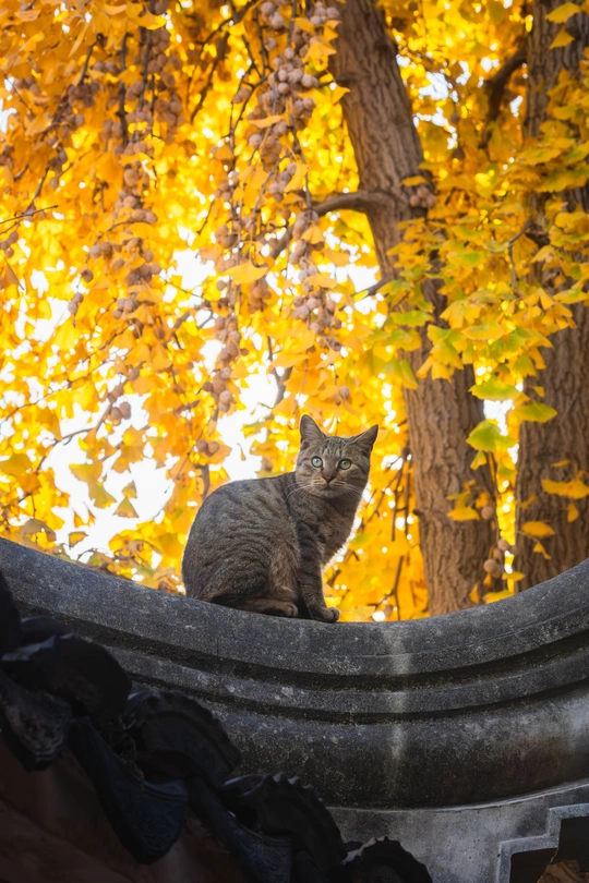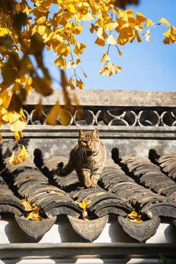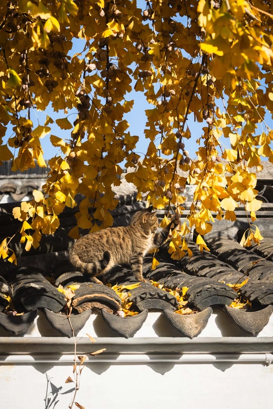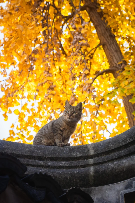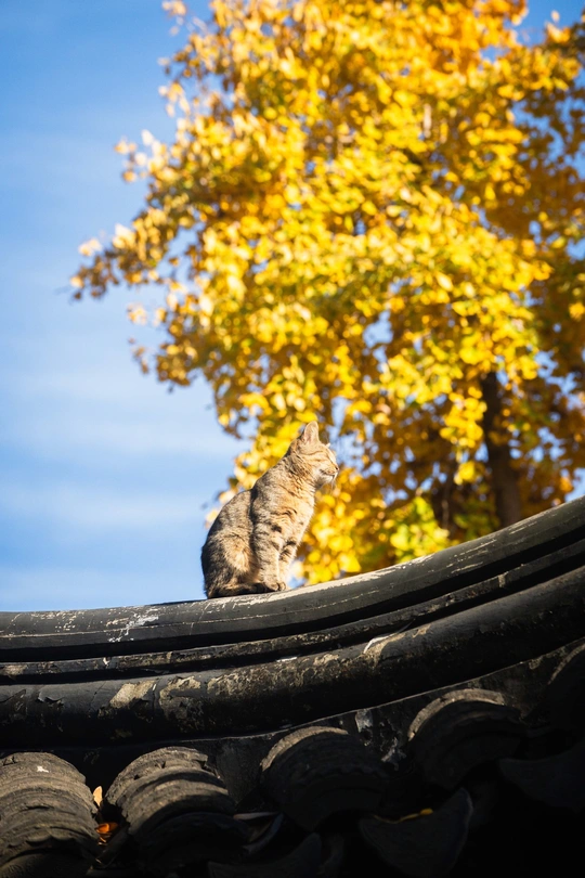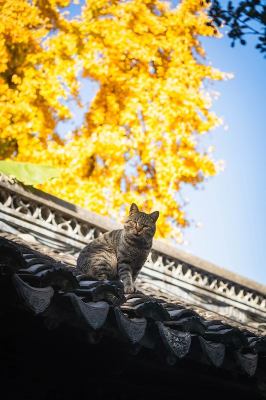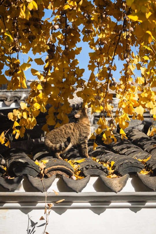 园林的屋顶就是咪们的游乐场,找个喜欢的地方晒太阳。溜达一下是常态。尤其是人发现以后它们一起俯视拍照和不停喵喵叫的人群估计也是一头雾水吧。🤣