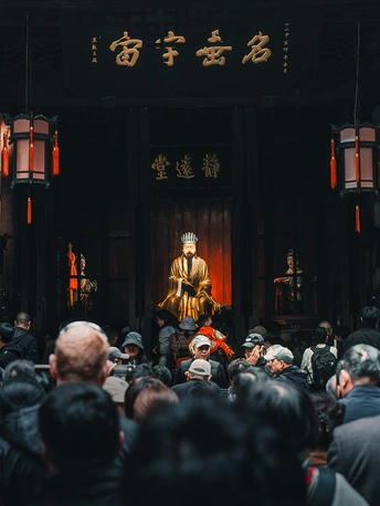 锦官城畔谒武侯,络绎人潮逐殿游,虽隔千年风云远,犹闻《出师表》里秋。