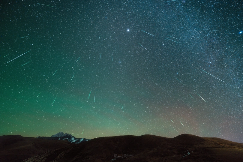 上周末去川西塔公草原拍摄双子座流星雨,看的只感觉流星雨从天空各个角度划过,而且预报流星雨的数量还挺准确的,因为我相机抓到了50多颗流星雨。 晚上川西的环境真的好冷好冷,温度显示有-10度,但体感温度绝对不止,因为我们在一个山坡上拍照,暴露感很强,冻了4小时终于拍完了,连手指脚趾都冻得没有知觉了。 这次是继去年英仙座之后,我第二次拍流星雨了,感觉熟练了很多,不过冬季银河确实没有夏季的那么好看。 #双子座流星雨 #塔公草原 #木雅大寺 #成都 #星空