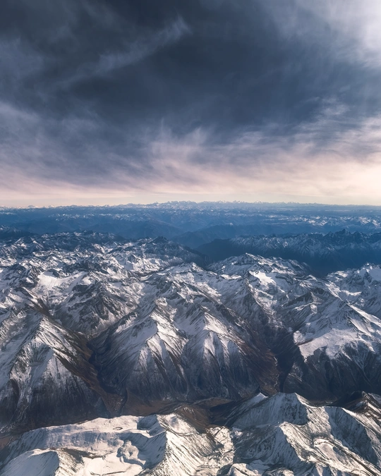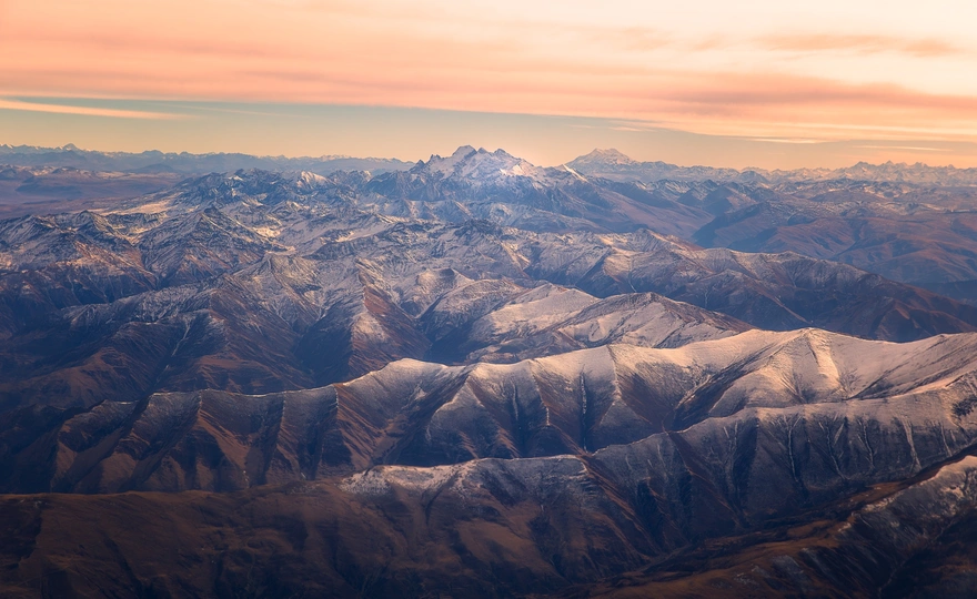 这是西藏航空 TV9898 航班,由四川达州飞往拉萨途中,于高空俯瞰青藏高原东缘。航线穿越雅安、林芝与山南上空,越过横断山区,逐步进入念青唐古拉山脉的延展地带。 画面中层层展开的雪峰并非单一的地标山峰,而是一整条高原山系的脊线形态。山峦在光影中起伏、重叠,构成青藏高原最本质的结构语言——连续、辽阔、不可抵达。 在飞行的高度,山不再被命名,而成为通往拉萨之前,一次关于尺度、方向与圣地的无声铺陈。积雪沿着山脊铺展,沟壑顺着地势下切,层层褶皱如同被时间反复按压的地表。 在高空俯瞰中,山失去了尺度感,也暂时脱离了命名系统。它们不再是地理坐标或朝圣目标,而是高原最本质的形态——连续、重复、无边无际。云层与光线在上方缓慢移动,为这些纹理赋予节奏,使大地显露出一种近乎抽象的秩序。