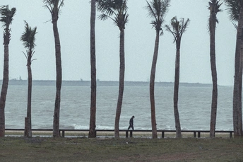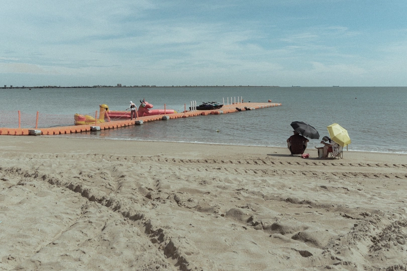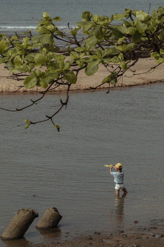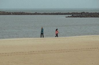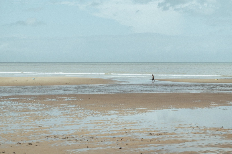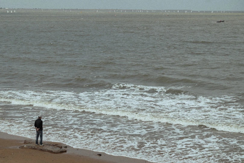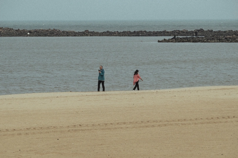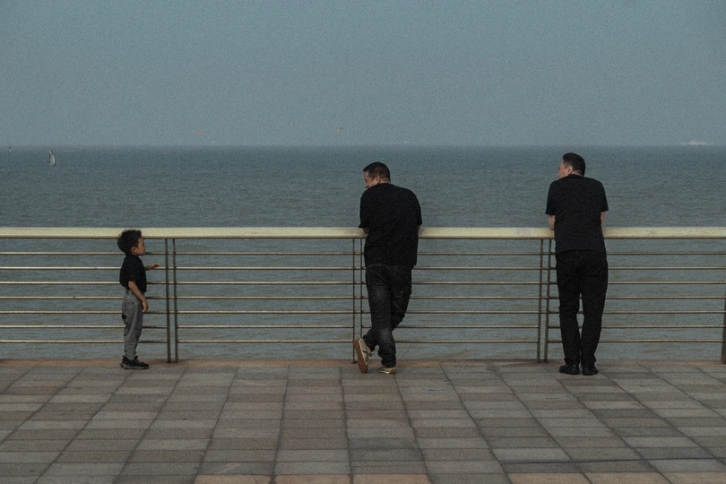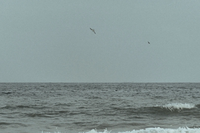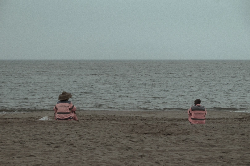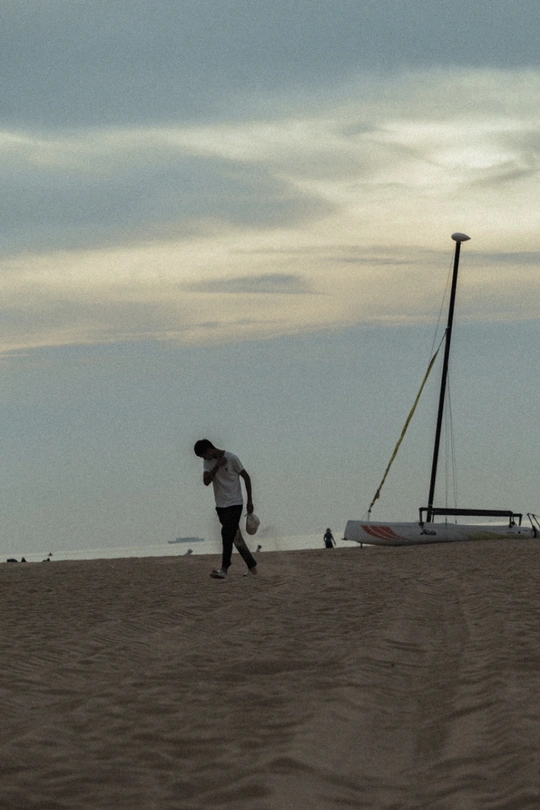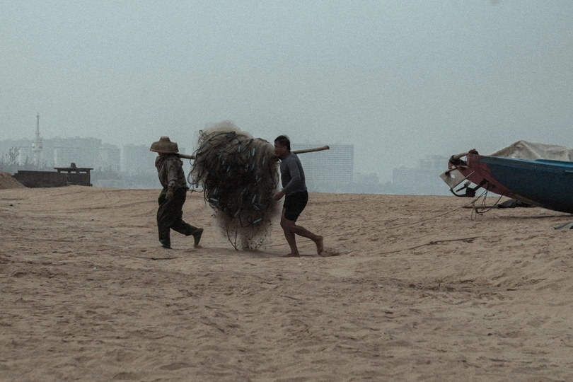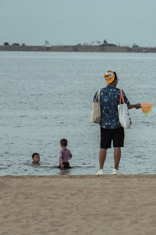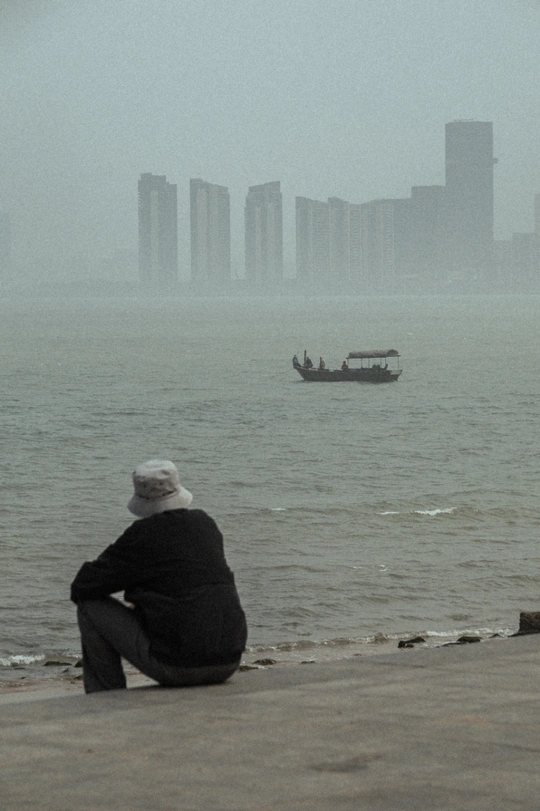 在那个炎热的夏天,在海的另一边,他们曾是一起光腚嬉戏的小伙伴。 时光荏苒,男孩长大后,一个继承了父亲的渔业,一个去了繁华的远方。 在每个清晨的五点,他俯身拉网,海浪正把昨夜的渔火碎片推上岸,远处货轮正拉响汽笛,他直起腰,用沾满海腥味的手背抹了抹额头上的汗。潮位开始慢慢下降,他朝薄雾走去,身后沙滩上,两行脚印慢慢渗成海的一部分。 而他在钢铁丛林中的某个街角,总想起那个涨潮的黄昏,想起金黄色的海浪,想起一起赤脚踩在海滩的感觉,想起在海滩上写下那两行歪歪扭扭的字,想起满是沙子的脸伴着浓浓的海盐味,在金黄色的海浪中游泳,一定要争个高低,直到远处亮起了微弱的渔火,却依然不愿回去的日子。 时过境迁,多年后的重逢,他指指远处的浪:“海还是那个海,但周围的一切都变了。”他笑笑,没说话。海在低语:留下的人用生活丈量潮汐,离开的人用孤独计算归期。潮水退去时,一个弯腰继续劳作,一个转身走向公路——他们各自理解生活:打渔的人到不了彼岸,看海的人回不到这片海。 如今,海滩上,总有来来往往看海的人。 海浪声中,他们突然听懂了两种孤独:一种在潮汐间讨生活,一种在生活里永远赶海。