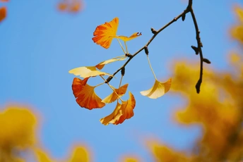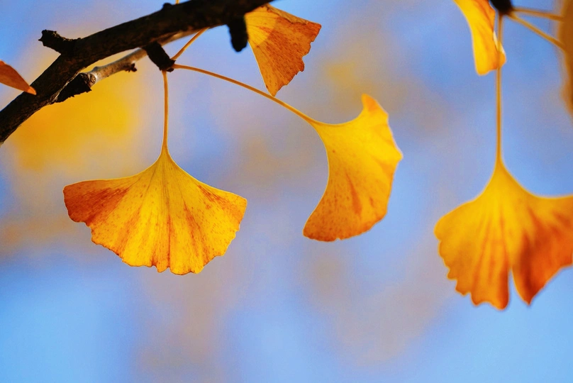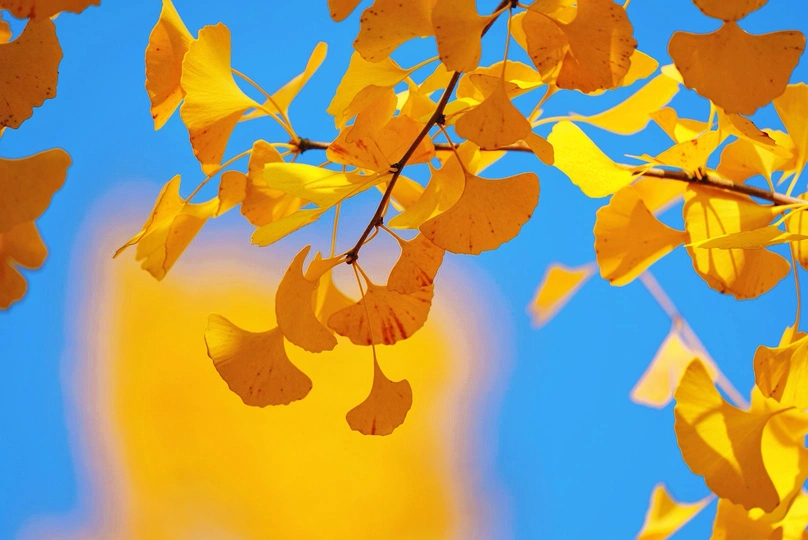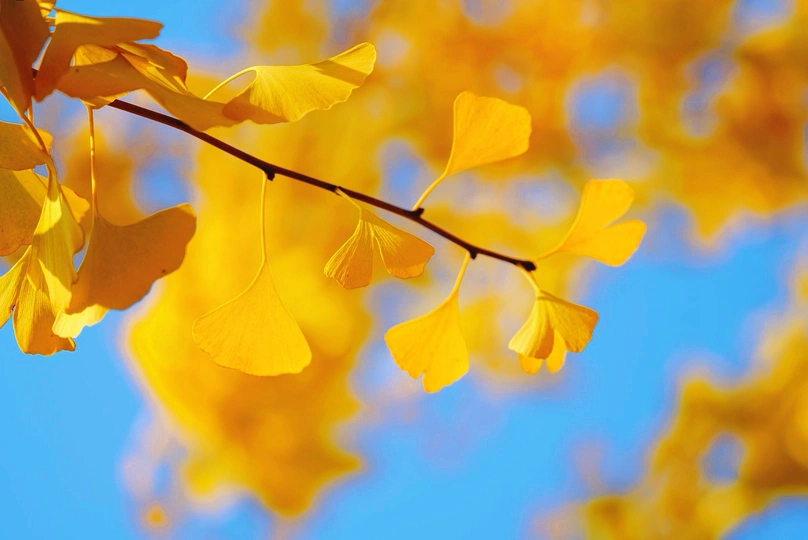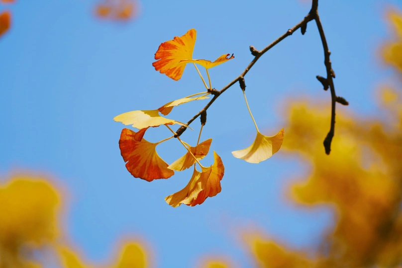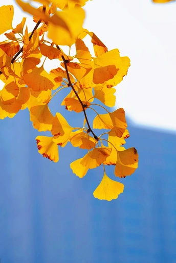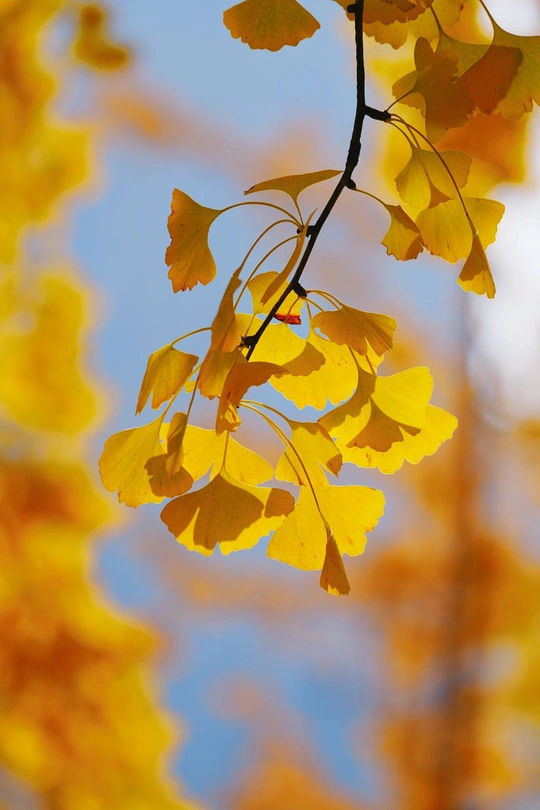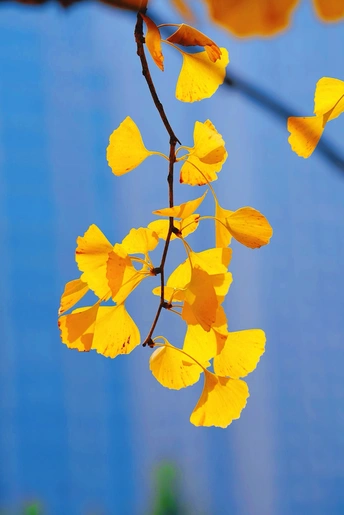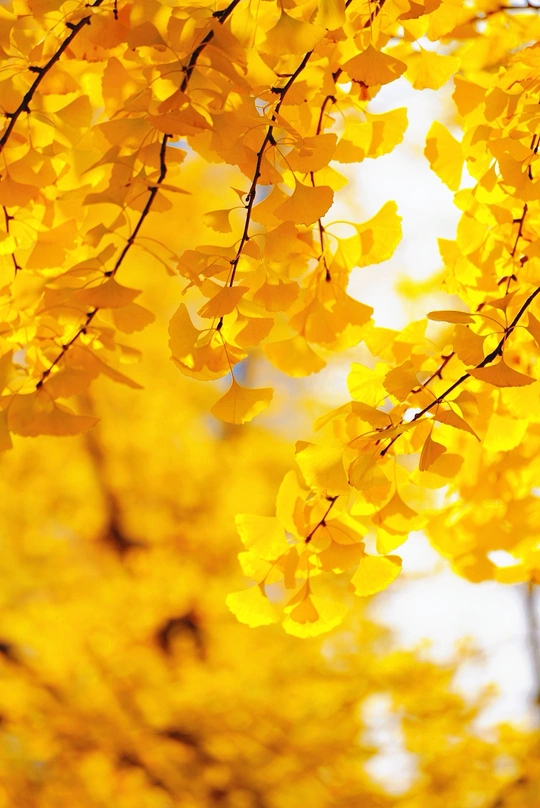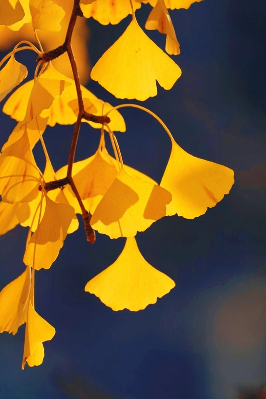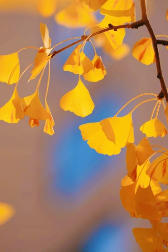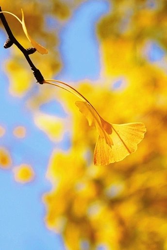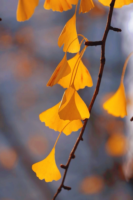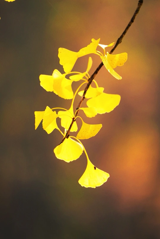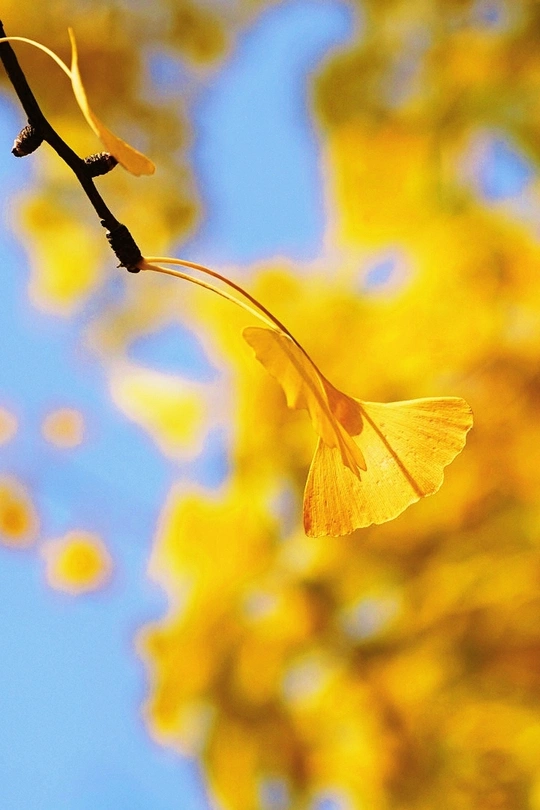 秋染银杏,叶坠成金。 一枝摇黄,半盏凝光。 风催叶舞,岁碾年长。 拾片藏黄,揽缕秋阳。