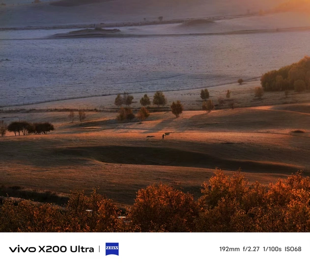 晨雾裹着秋野的余温,落日照亮起伏的草甸。192mm的镜头里,霜色与橙光揉成一片温柔,连独行的身影都成了天地间轻描的一笔。vivo X200 Ultra定格的,是秋日荒原刚睡醒的模样。