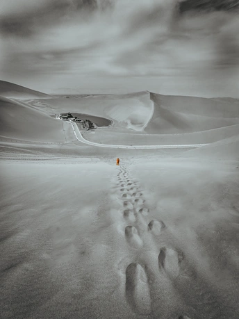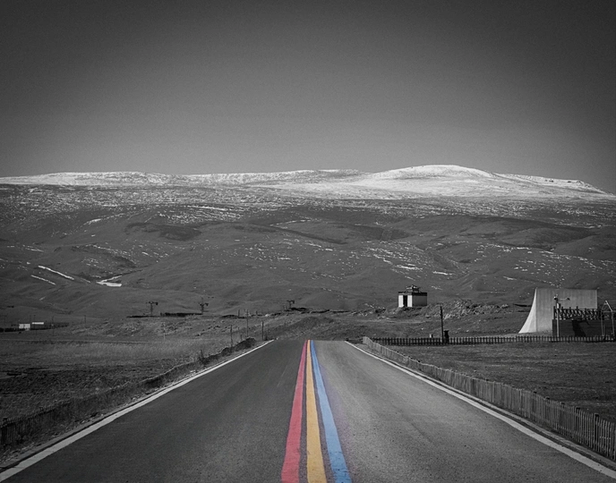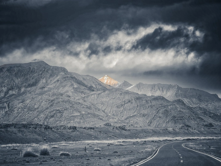 2025旅途滤色照 · 用镜头收藏山河的呼吸 雪山巍峨,公路向远,红旗在风里写诗。 黑白是大地的底片,滤色是那一抹中国红与暖阳金路线和山峰,是2025年我走过的路、见过的光。 每一张照片,都是灵魂出走的印记——不为抵达,只为在路上,遇见更辽阔的自己。 拍摄地点:青海与甘肃 拍摄创作:滤色