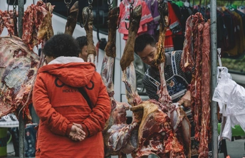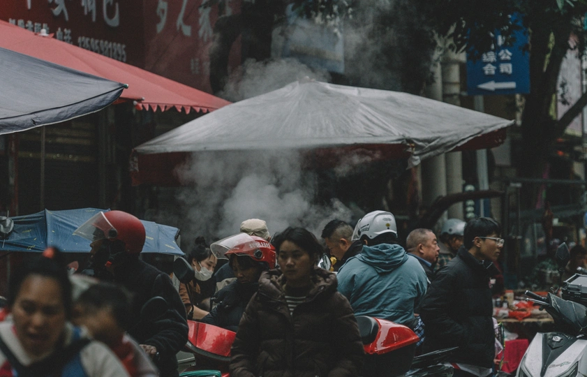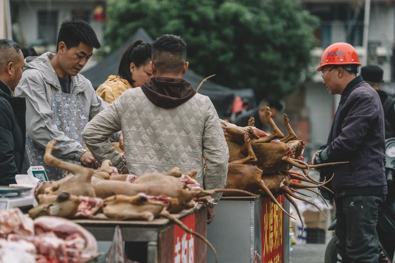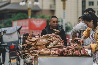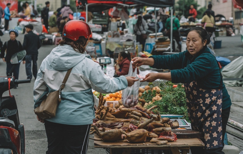 2025年12月21日,贵州省黔西南布依族苗族自治州望谟县县城。冬至清晨,市集里人声鼎沸。往来行人脚步匆匆,手里提着按照传统习俗刚选好的时鲜,空气中弥漫着浓郁的狗肉香与羊肉鲜。 大街小巷的热气混着吆喝声,把冬日的寒意悄悄驱散。烟火缭绕间,尽是冬日里最踏实的暖。