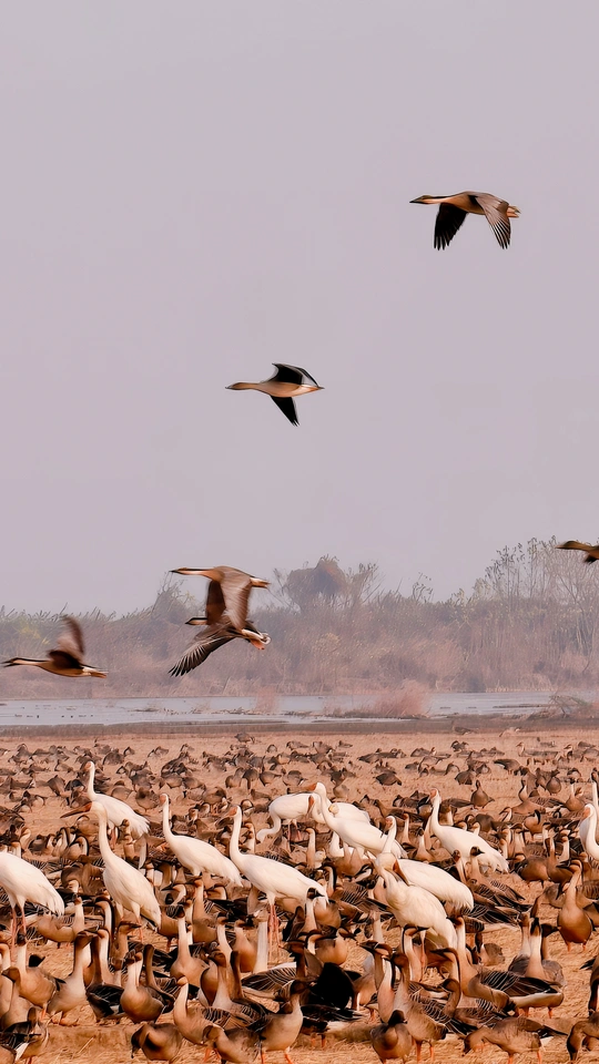 每年都有无数的来自西伯利亚的候鸟南飞,来鄱阳湖国家湿地公园越冬
