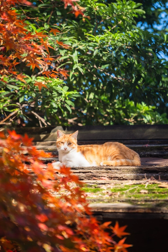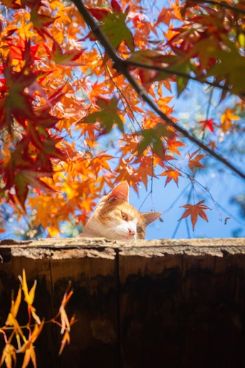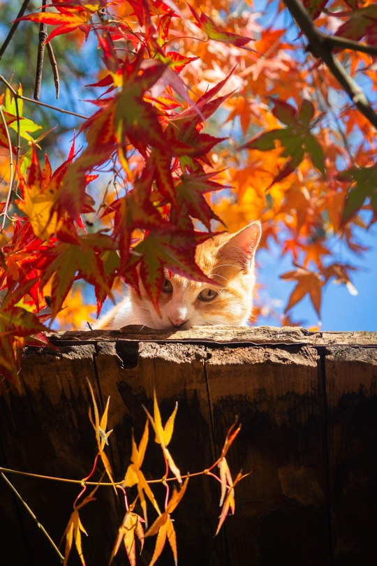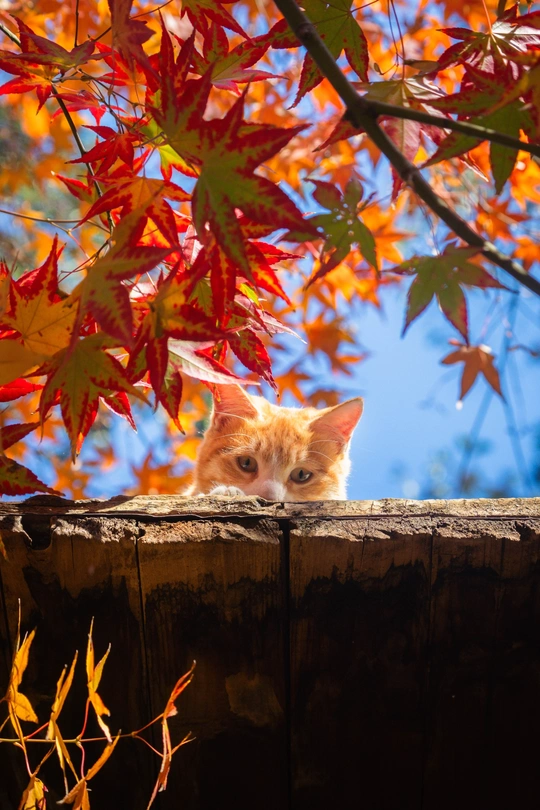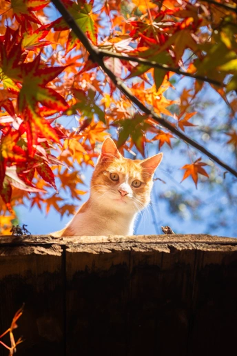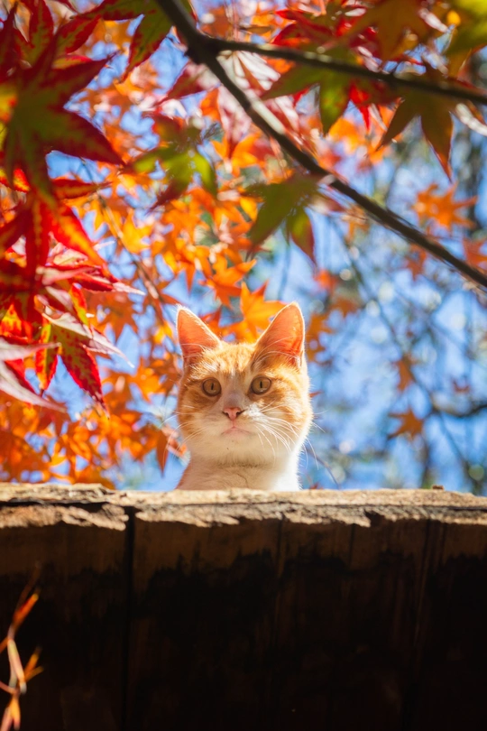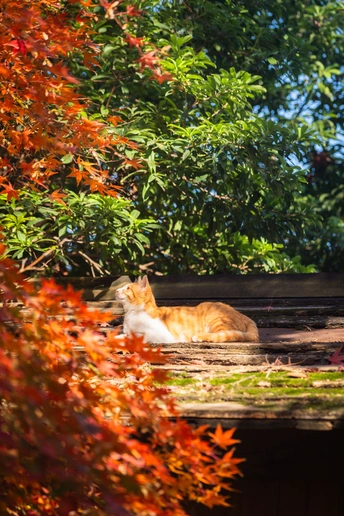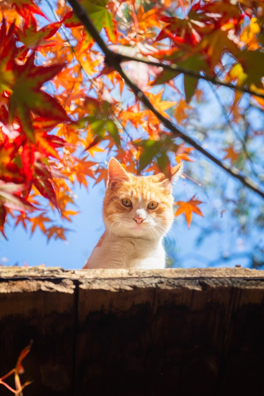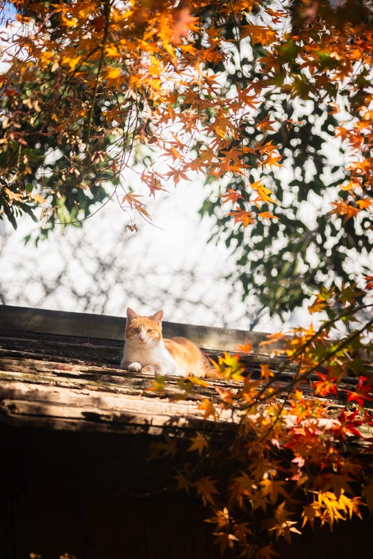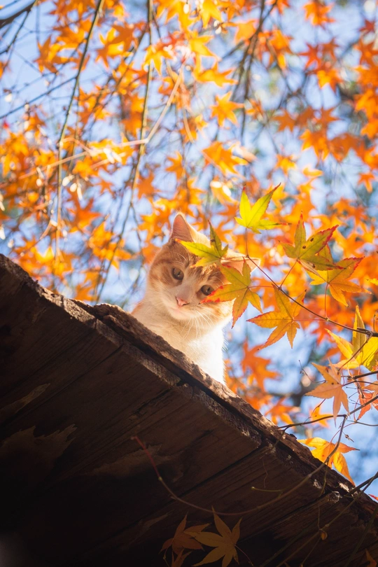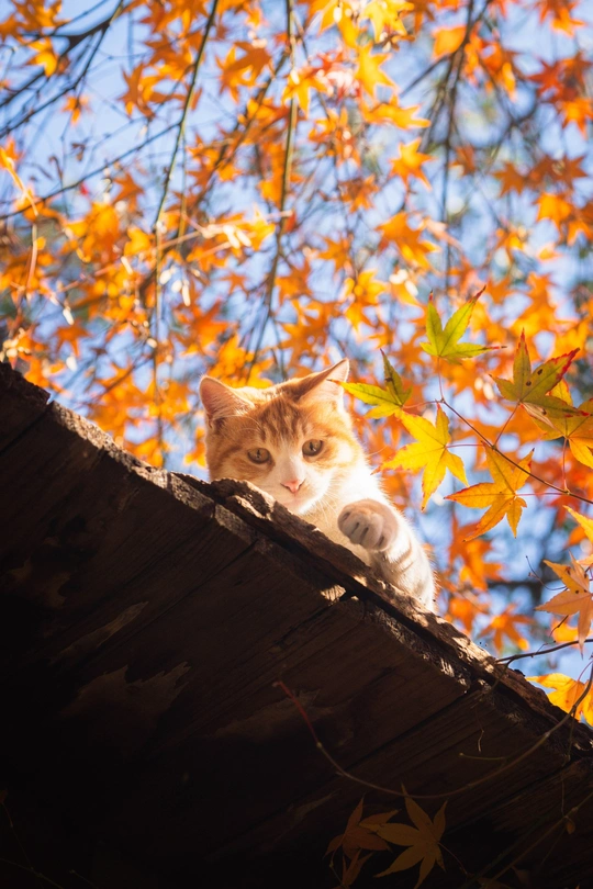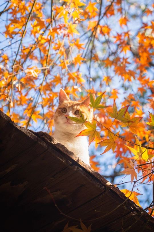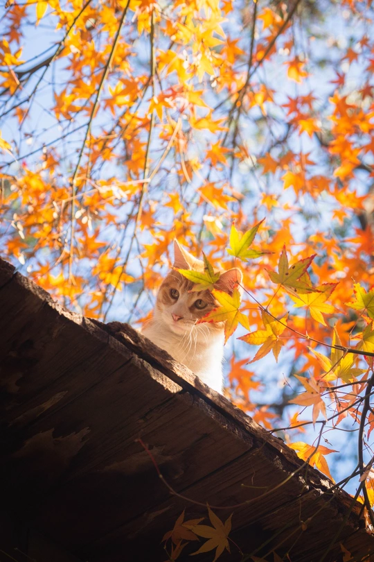头顶突然出现的猫猫头,给我丢了一些屋顶泥巴和树枝。