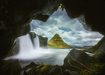拍摄于冰岛草帽山。这是一个几乎没人拍过的角度,我将相机放入极小的洞口进行间隔长曝光拍摄,10mm超广角能够将上下的岩壁刚好覆盖,完美包裹住远处的草帽山与瀑布。 @米拍编少 @米拍社长