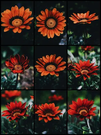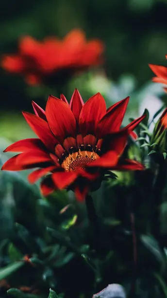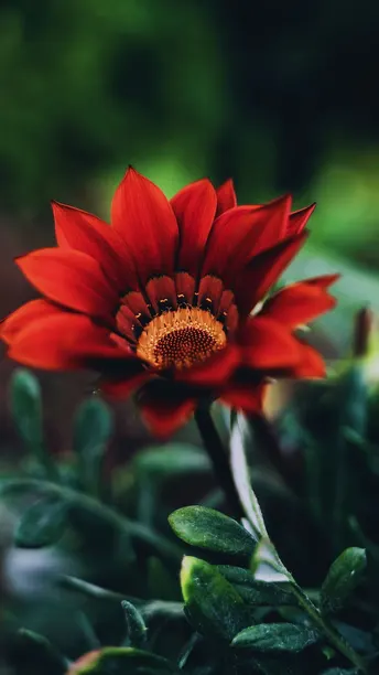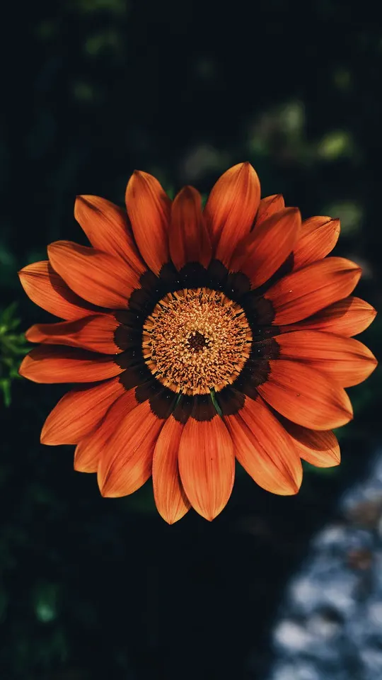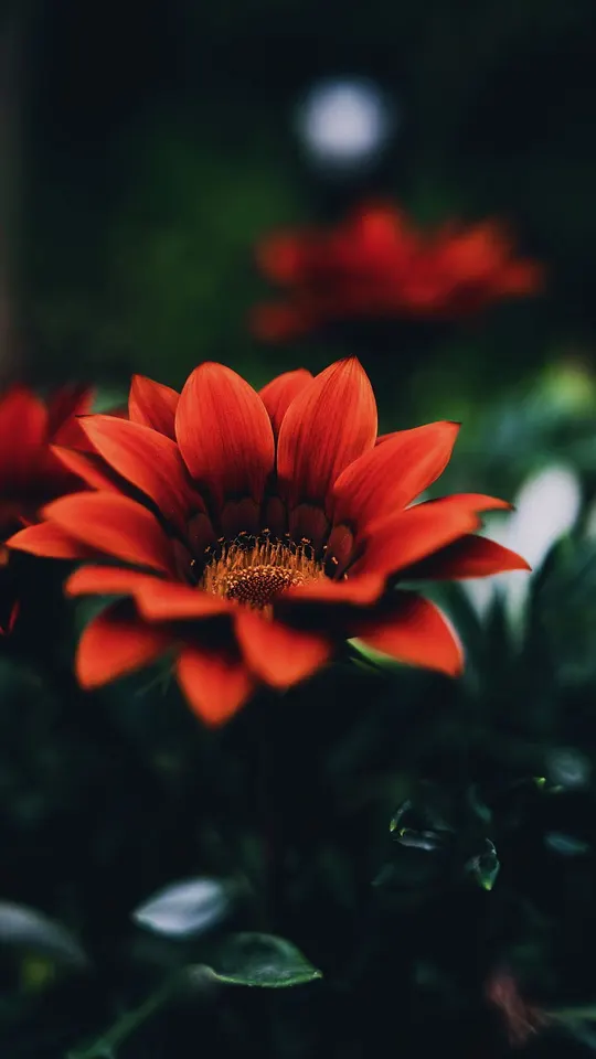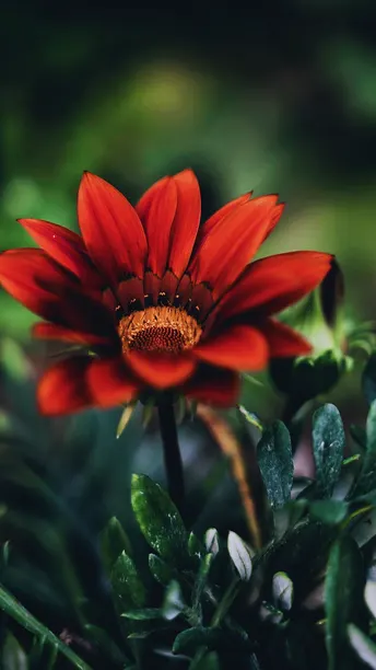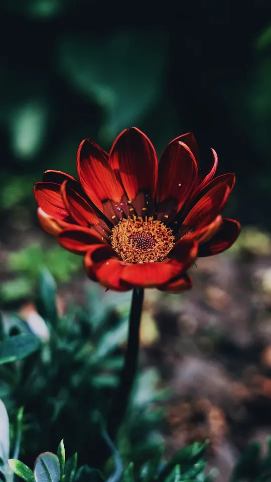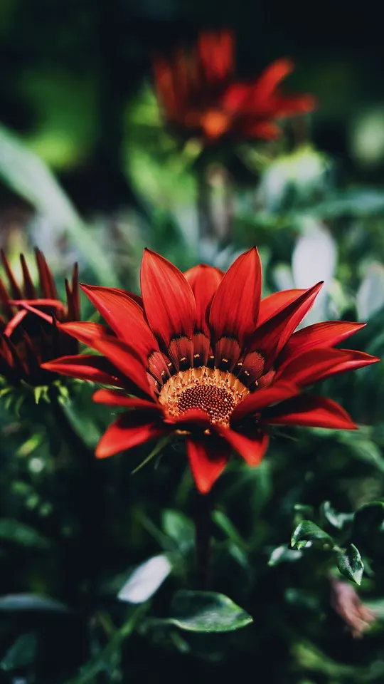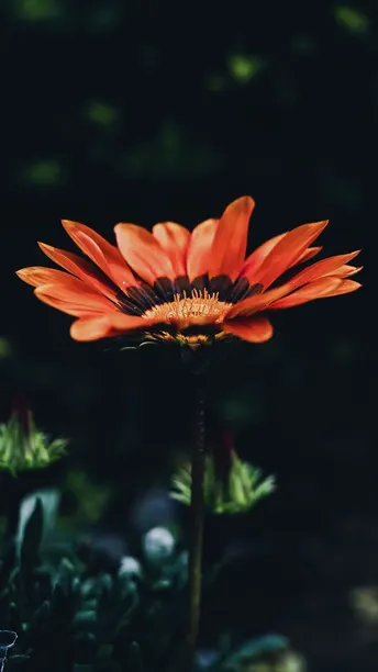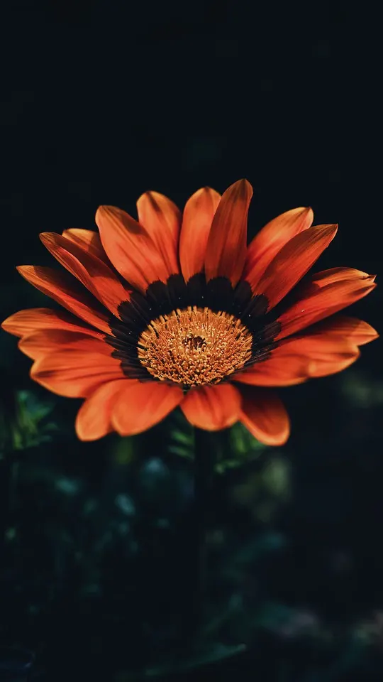暗调镜头里的勋章菊太戳我了🌼 橘红渐变的花瓣层层舒展,像揉碎了落日熔金撒在花心 红得热烈,橙得温柔,在深绿背景里绽成独一份的明艳 原来花的盛放,也可以是这般浓墨重彩的模样