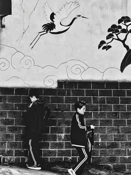 鹤飞墙畔,云绕旧砖, 人行画里,步惹清欢。