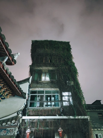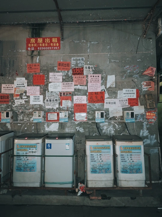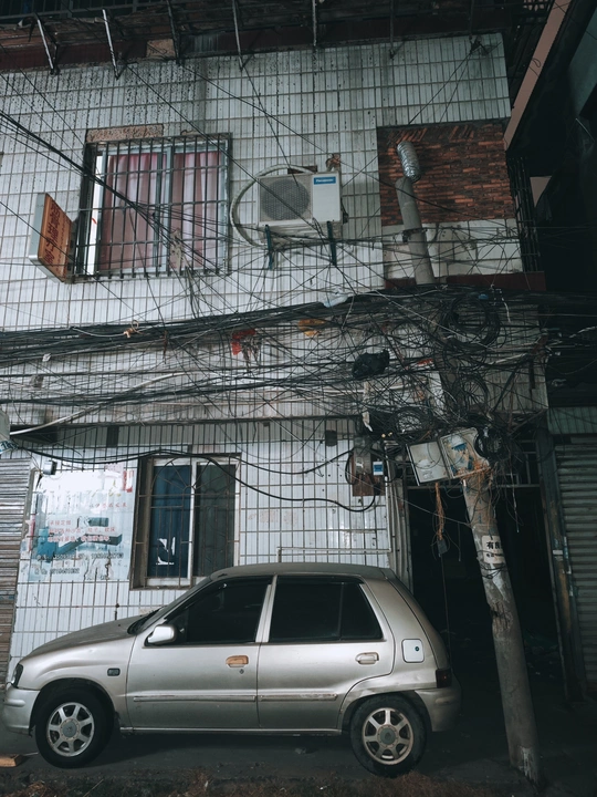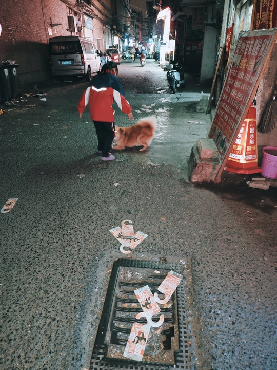 在城市的边缘里,藏匿着无数未被歌颂的故事。老墙上的“忠信”字样,在夜色中低语着往昔的辉煌;狭窄的巷弄,孩童与狗嬉戏,溅起水花里的纯真;修车铺的老人,在零件堆中打盹,梦里或许有年轻时的轰鸣;而那密如蛛网的电线,缠绕着生活的琐碎与坚韧。这里,每一块斑驳的墙皮,每一缕飘散的炊烟,都是岁月无声的注脚。我穿梭其间,用镜头捕捉那些被日常忽略的诗意,让平凡绽放出温柔的光。