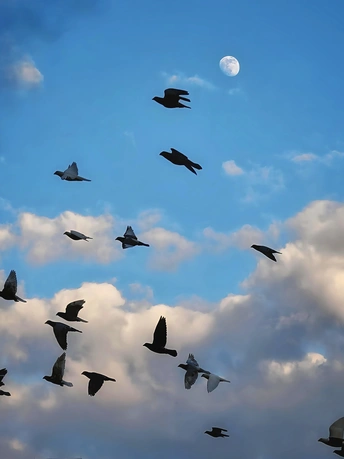 月亮是天空的诗眼,鸟儿是追诗的行者。 追月的旅途,是一场浪漫的奔赴。