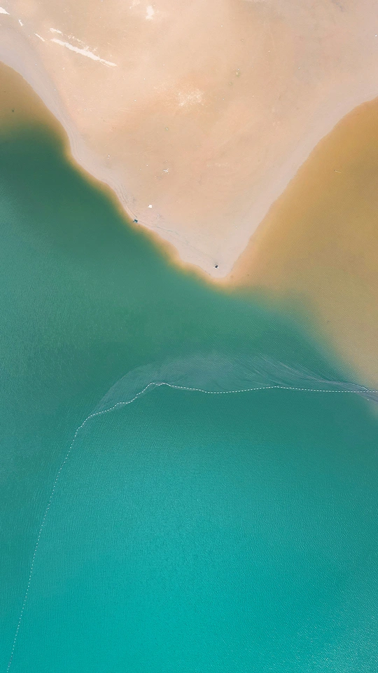 滩涂边的海水漾着清透的蓝,滩边铺展着暖软的黄,两种色彩在海岸线处交汇,勾勒出一幅自然雕琢的撞色画。