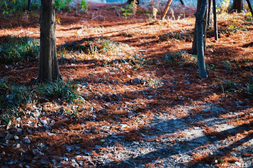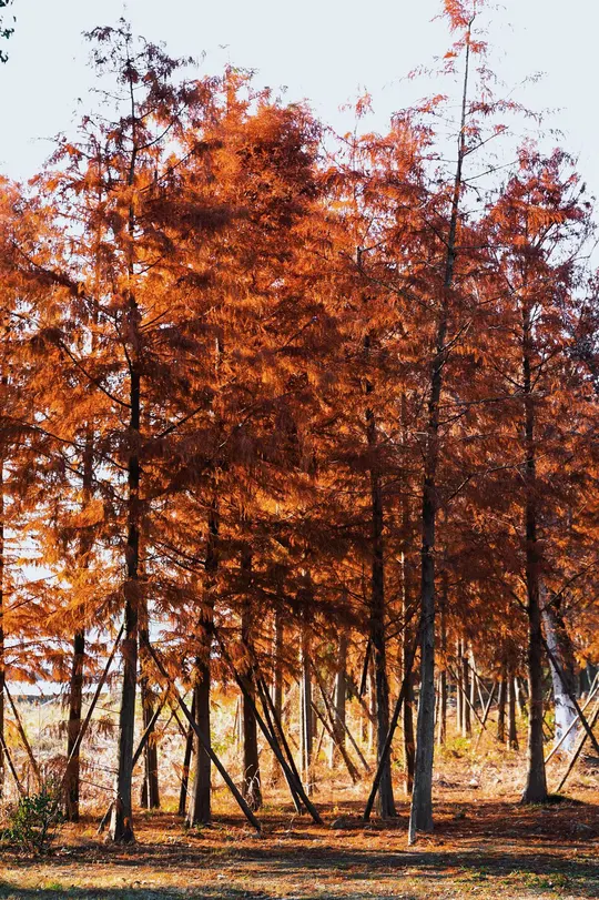 风一吹,红杉林就把秋天酿成了焦糖色🍂 踩着满地落叶漫步,指尖捏着一枚红杉枝叶,抬眼是层层叠叠的橙红,低头是铺满地面的温柔,连湖水边的红杉树都像打翻了调色盘~ 原来秋天的浪漫,都藏在这片红杉林里呀✨