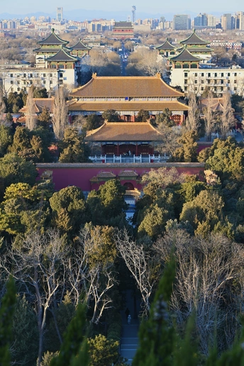 天气太给力了!从景山公园眺望鼓楼大街,是感受北京中轴线魅力的经典视角。站在景山制高点万春亭向北远眺,可以看到地安门内大街笔直延伸,与远处的鼓楼、钟楼遥相呼应,构成一幅古今交融的城市画卷。