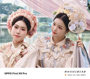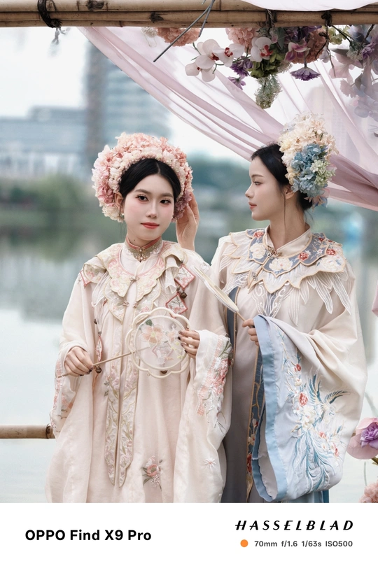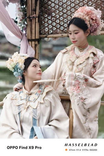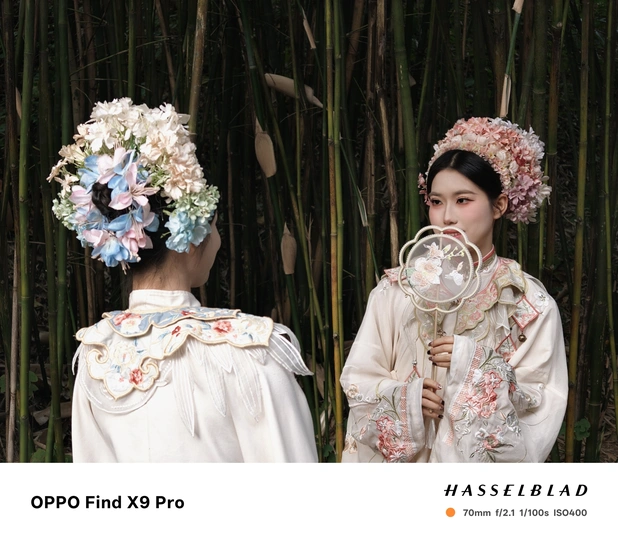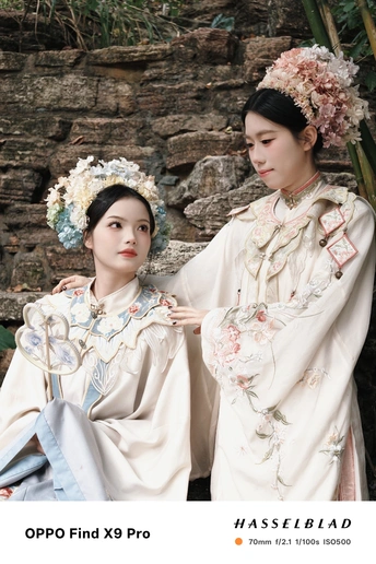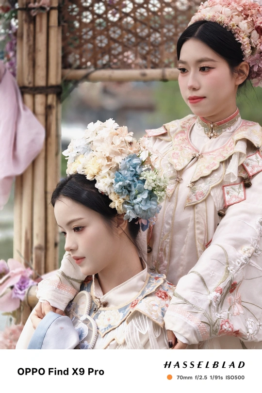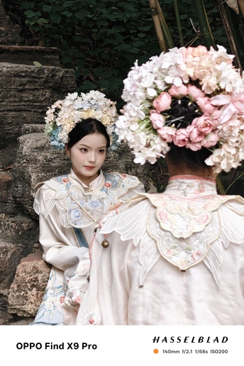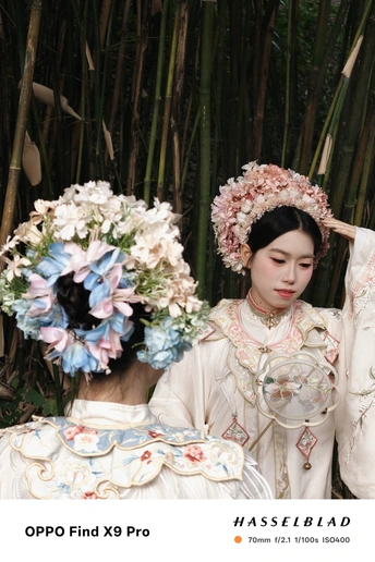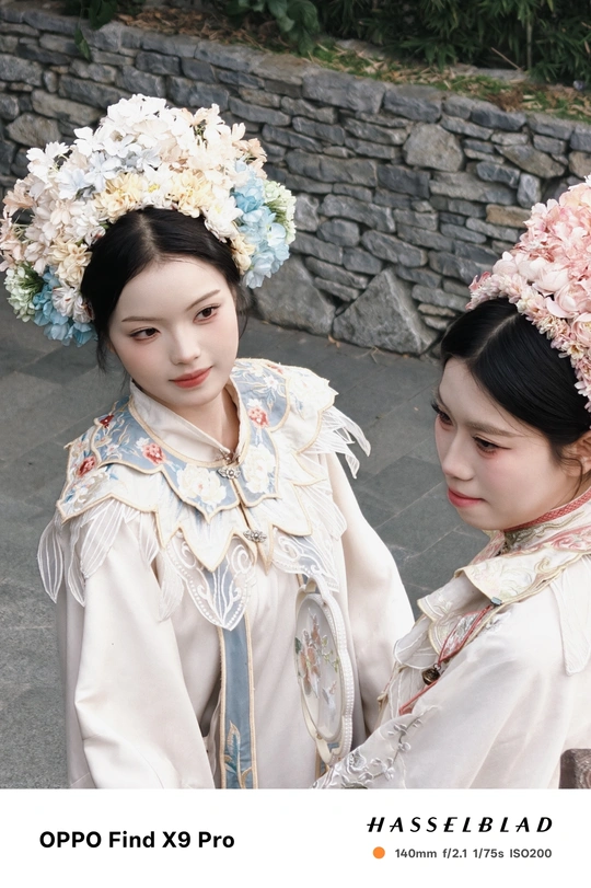 鬓边簪花缀满春光,CC胶片滤镜让笑颜有了复古颗粒感。