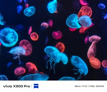 夜晚的水母散发着多彩的颜色
