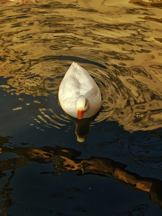 夕阳染透粼粼水纹,白羽掠过鎏金涟漪。羽尖轻点处漾开同心圆,深浅交错的倒影随波舒展,构成天地间最温柔的圆舞曲。