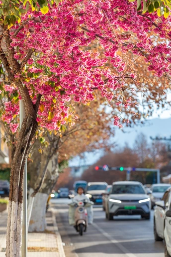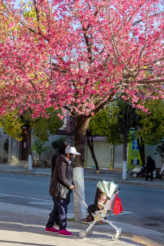 盼过中济海畔水杉似火染红半边天,看过白沙壁画旁银杏如金毯铺地,等过拉市海边候鸟掠过波光水面……当新年钟声敲响,丽江人心里又生出新念想:大理樱花都开成海了,咱丽江冬樱何时惊艳登场? 别急,不骗你,丽江冬樱已悄然绽放! 它没有春天那绵延数里、铺天盖地的盛景,却以低调惊艳之姿,散落在城市街巷、老宅院落、寻常路边。如点点星火,点亮高原清冷冬日,为辞旧迎新添一抹温柔热烈色彩,似大自然精心准备的新年礼物。