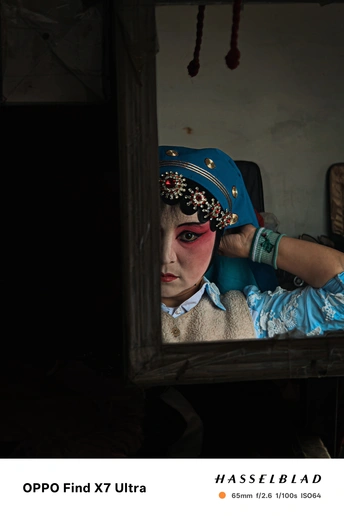 镜中半妆半素颜,眉眼渐锋利,灯下瞳孔闪,映出另一个自己,等帷幕开启,在呼吸与掌声中登场。