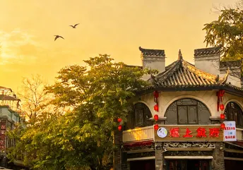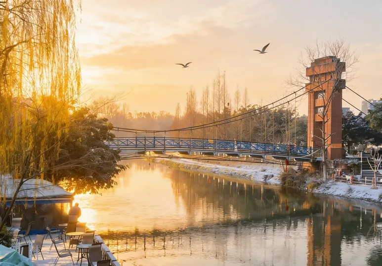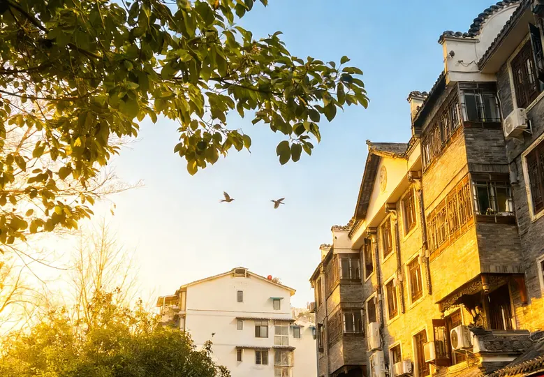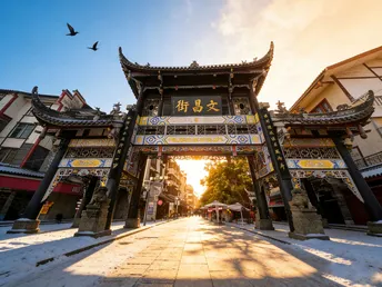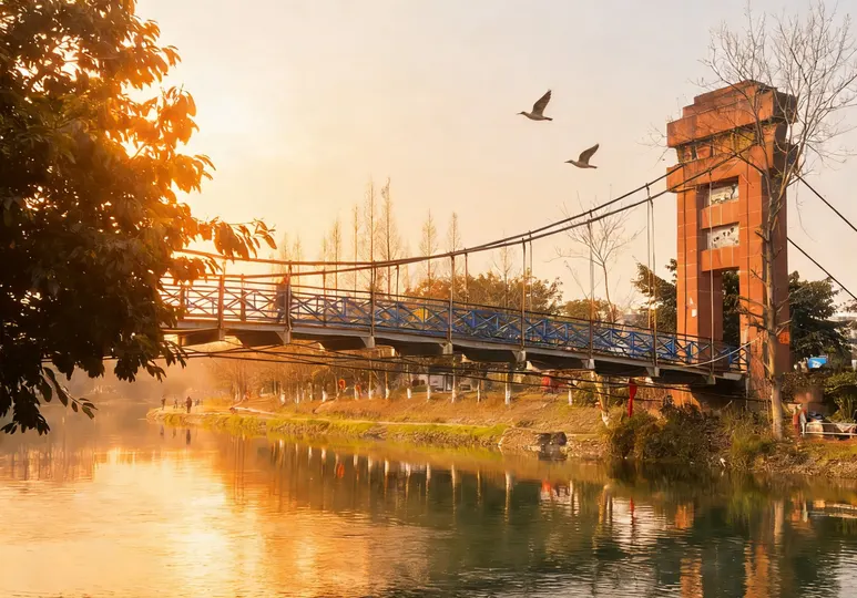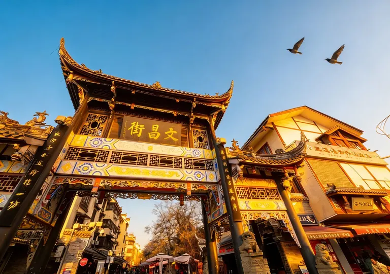 冬日的阳光斜斜洒在三道堰文昌街的牌坊上,鎏金的“文昌街”三字被镀上一层温柔的光晕,飞檐翘角在暖阳里舒展着古雅的轮廓。风掠过青瓦白墙,捎来街边茶铺的热气,一两片枯叶旋着落下,又被阳光托着,轻轻贴在雕花的木栏上。偶尔有飞鸟掠过天际,翅膀剪碎流云,也剪碎这堰畔老街的静谧,时光仿佛在这里慢了下来,只留暖阳与烟火,温柔相拥。