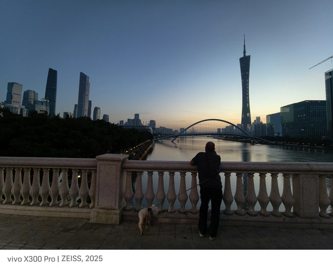 准备天亮了,正牵着狗在晨步的老人突然停了下来,倚靠在江边,静静的看着日出的方向,等着太阳升起来。