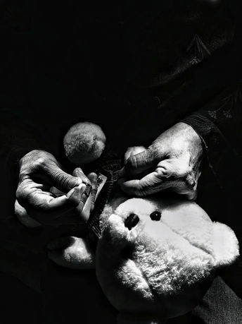 布满褶皱的老人手,捏着细小的针线,俯身修补孩子的玩具熊。针脚或许歪斜,动作或许迟缓,但每一次穿针引线,都是藏在岁月里的温柔与牵挂……