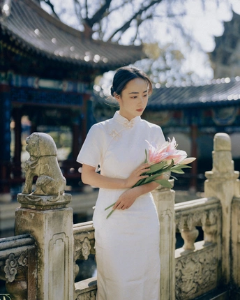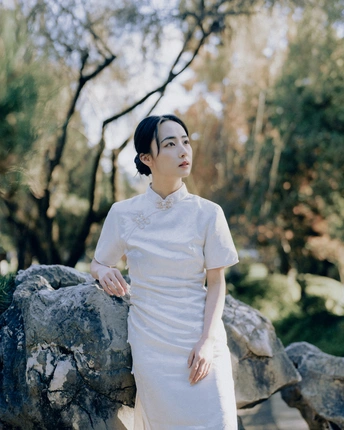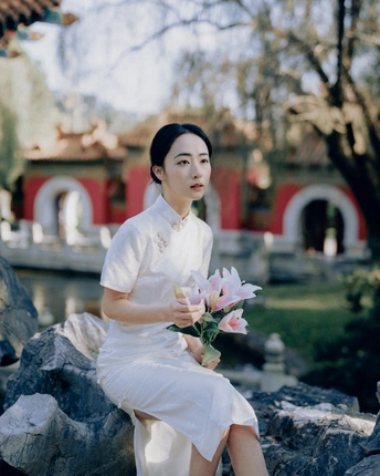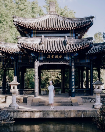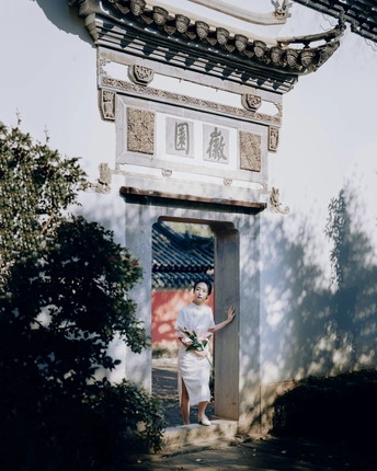 策划了许久的新中式拍摄,终于在初冬这场久违的阳光里完成。这次拍摄选在了世博园里,世博园的妙处,在于移步换景,前一秒还在檐下听风,下一秒便与一片斑斓的落叶墙相遇,园内由于需要收费,即使在周末,人也少了很多。