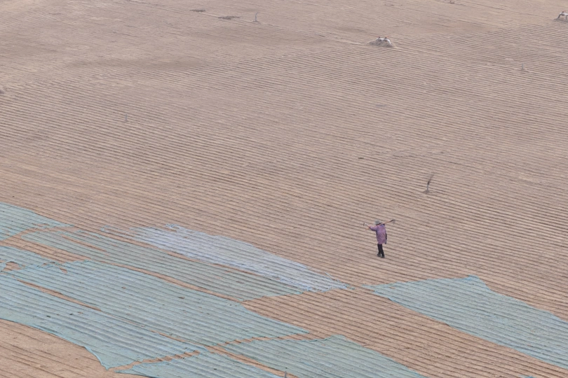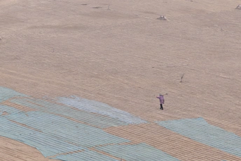 在那片广袤的田野上,独行者的身影显得渺小又坚毅。