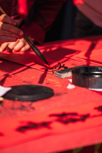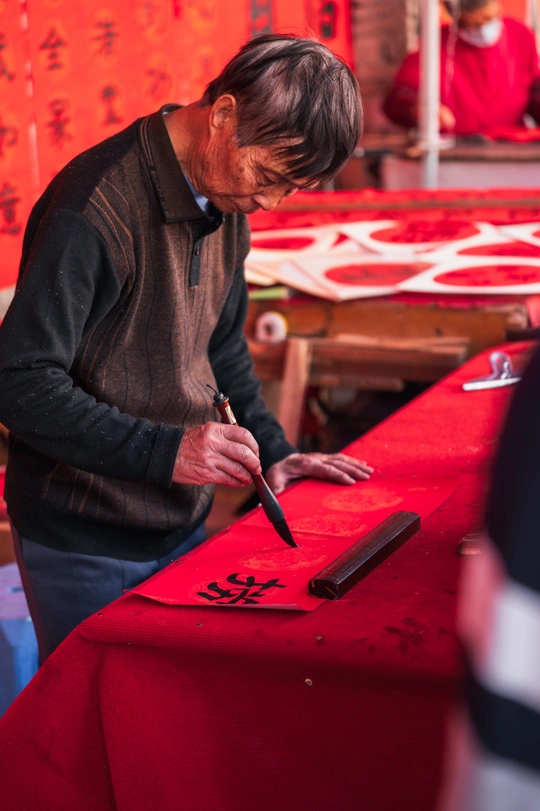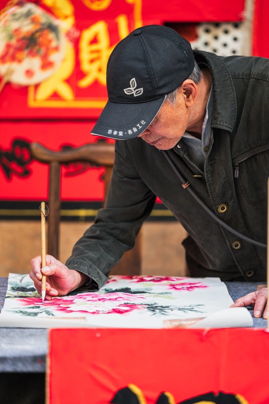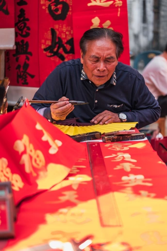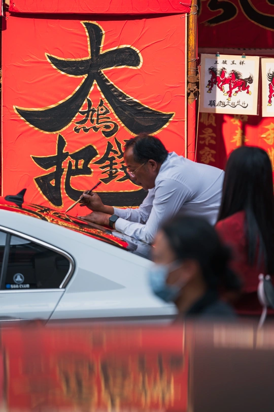 春节来临前夕,快子路一如既往的成为了佛山春节气氛最热烈的地方,满屏都是浓烈的红色,甚至产生了颜色溢出的感觉。按下快门时,忽然觉得春节从来不是日历上的某一天——是墨水渗进宣纸的脉络,是金粉落在睫毛上的触觉,是所有鲜艳都理直气壮的时刻。