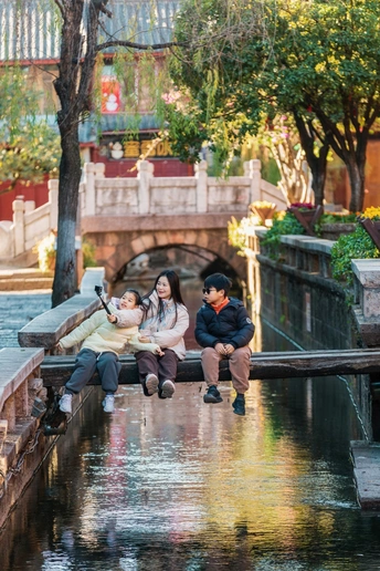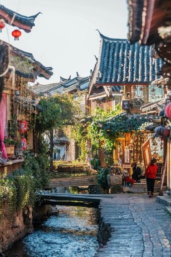 在丽江古城,时间总是慢下来的。这里的居民和游客习惯了慵懒的节奏,睡到太阳晒屁股才肯睁眼,因此,鲜有人见过古城在晨光初露时的模样。 所以,你不妨早起一天试试。石板路泛着露水的微光,小桥流水静静流淌,远处的玉龙雪山披着第一缕金辉。这一刻的丽江,安静、温柔,像一幅未被惊扰的水墨画。