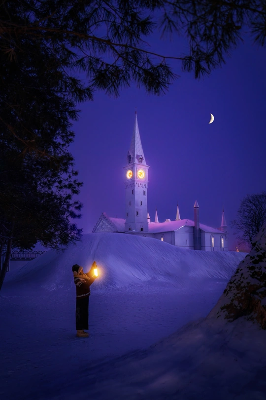 不是北欧,这真的是在国内! 这里是哈尔滨的伏尔加庄园!! 去哈尔滨还在拍冰雪大世界?来这个小众的伏尔加庄园吧,人少景美,到处都是城堡,去这一定要等到落日蓝调,带个露营灯, 我就是没带露营灯,[嘻嘻R]但是我用手机找个纯黄色的图片,搭配上我手机的挂绳,露营灯平替啊 拍摄设备 📷 SONY A7r3